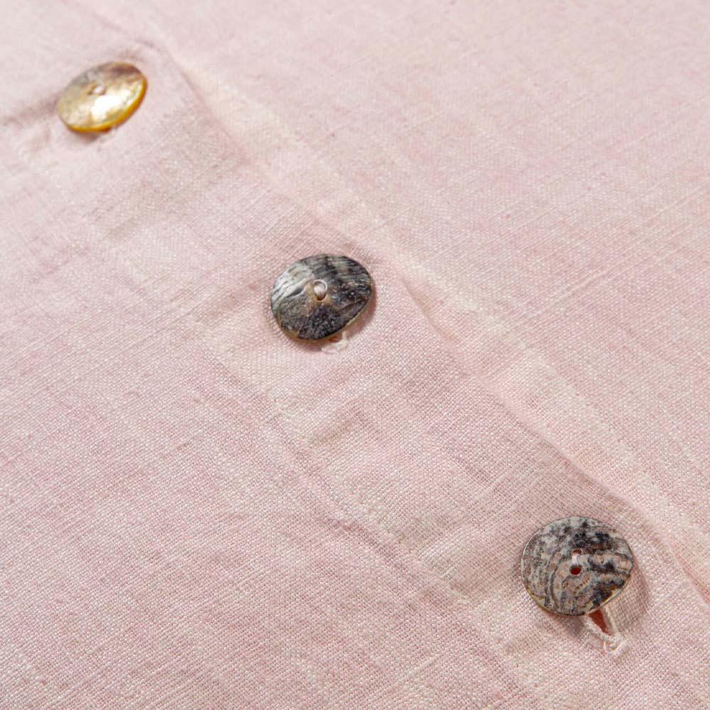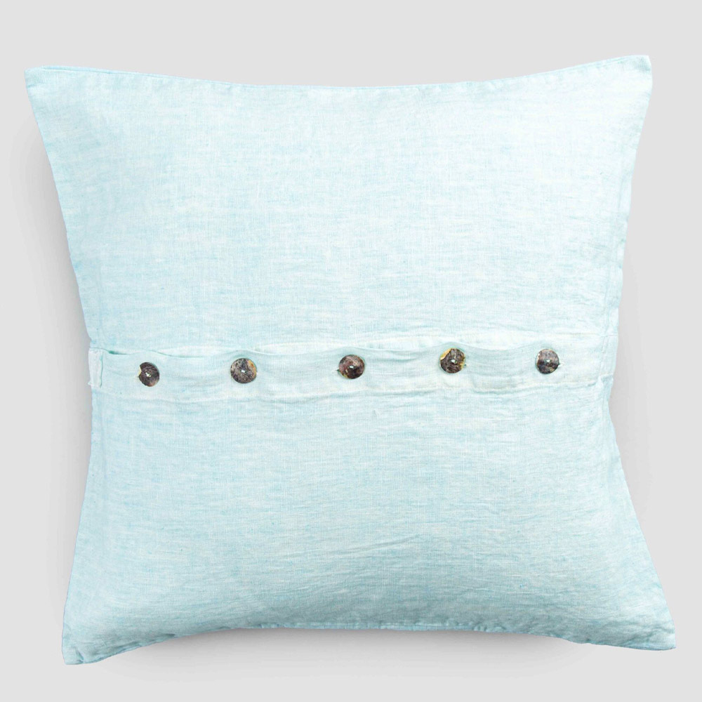 Square Pillowcase in Colored Linen with Agoya Buttons in Mother of Pearl - Mediterranean