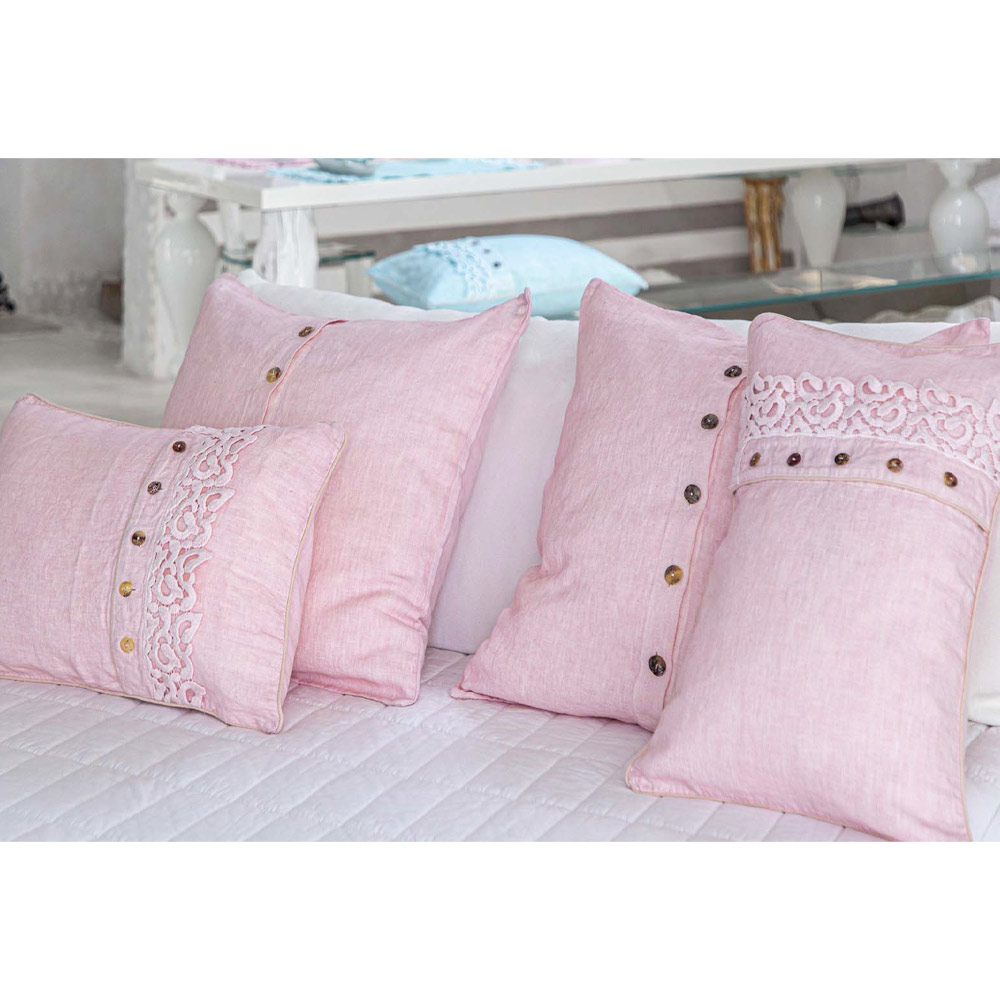 The value of tradition joins the modern lifestyle with this heavy linen pillowcase with central closure with Agoya buttons in mother of pearl, for decorative cushions with a square design.