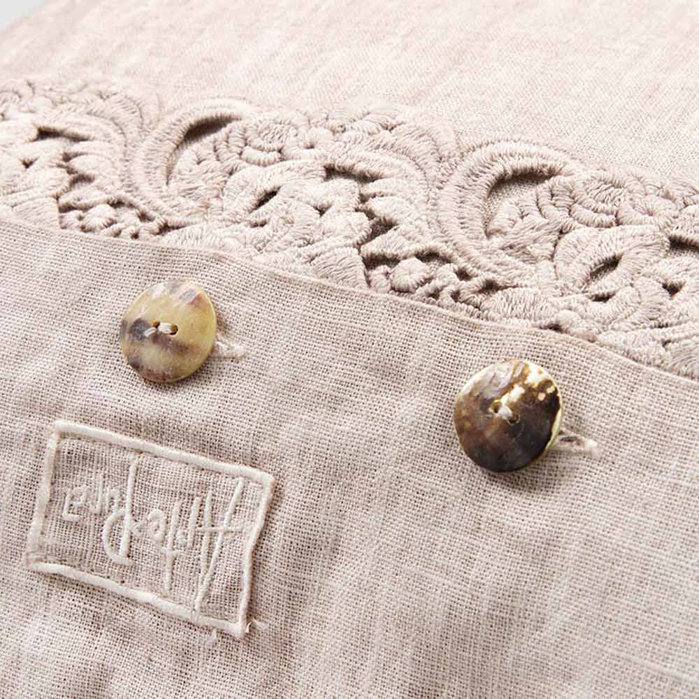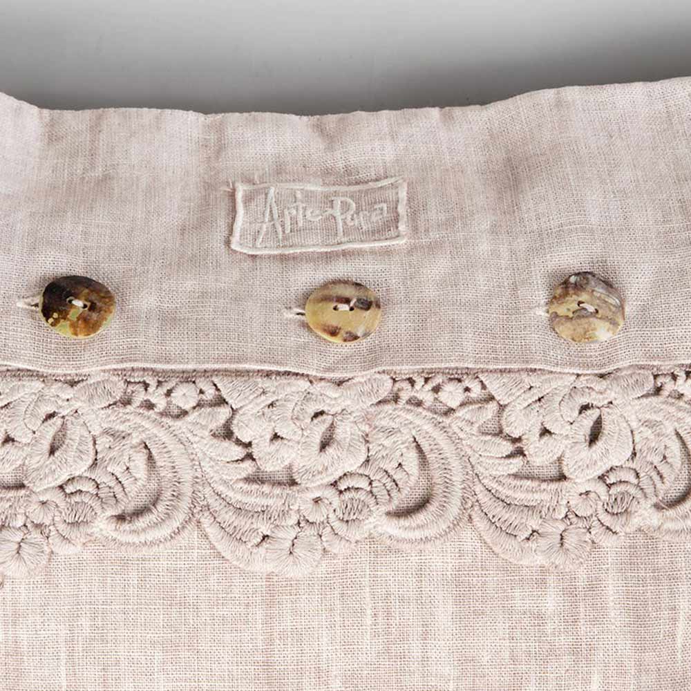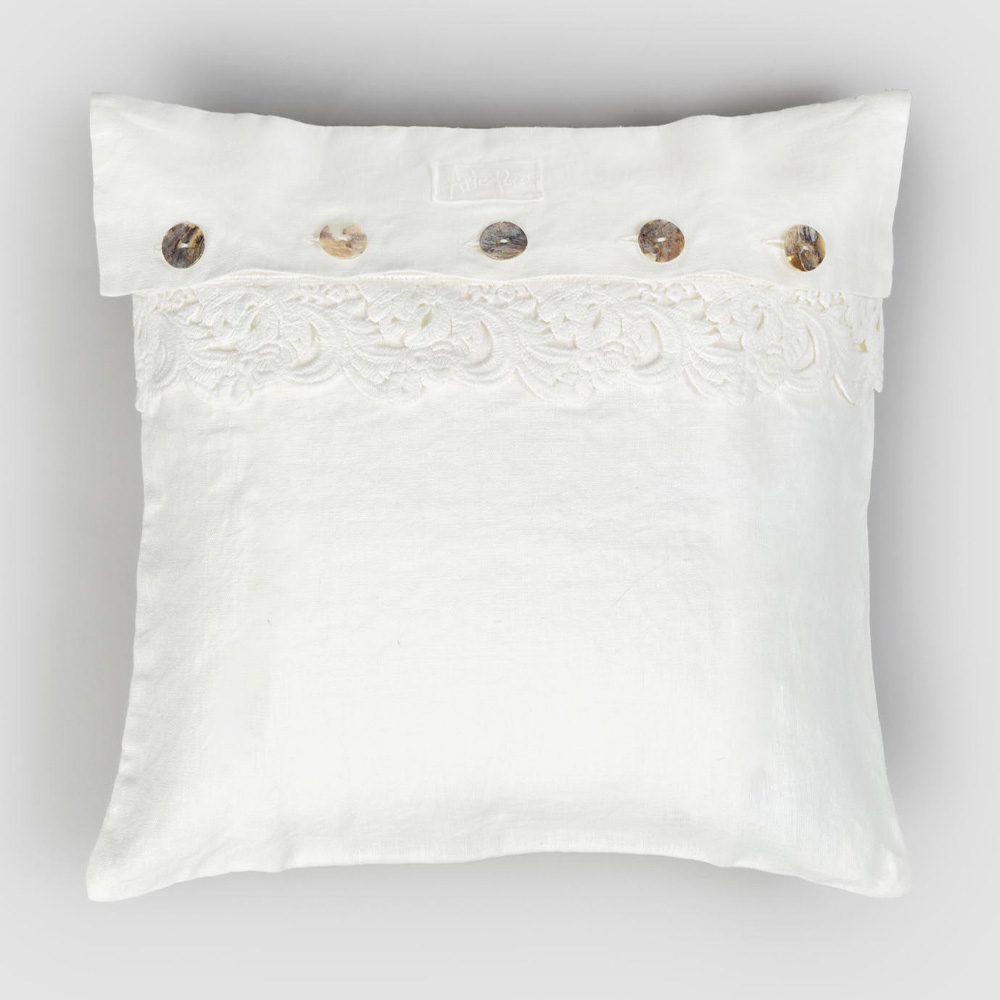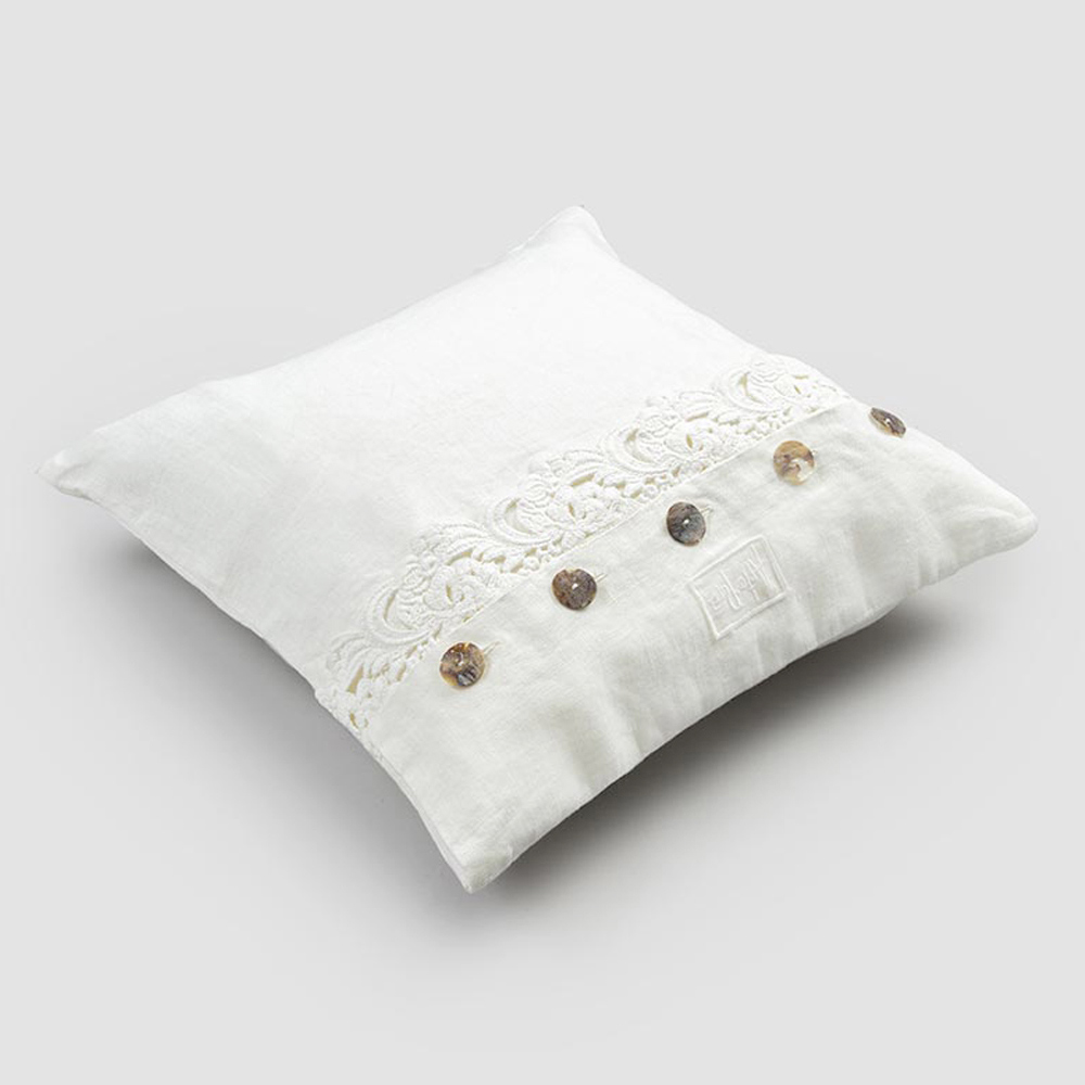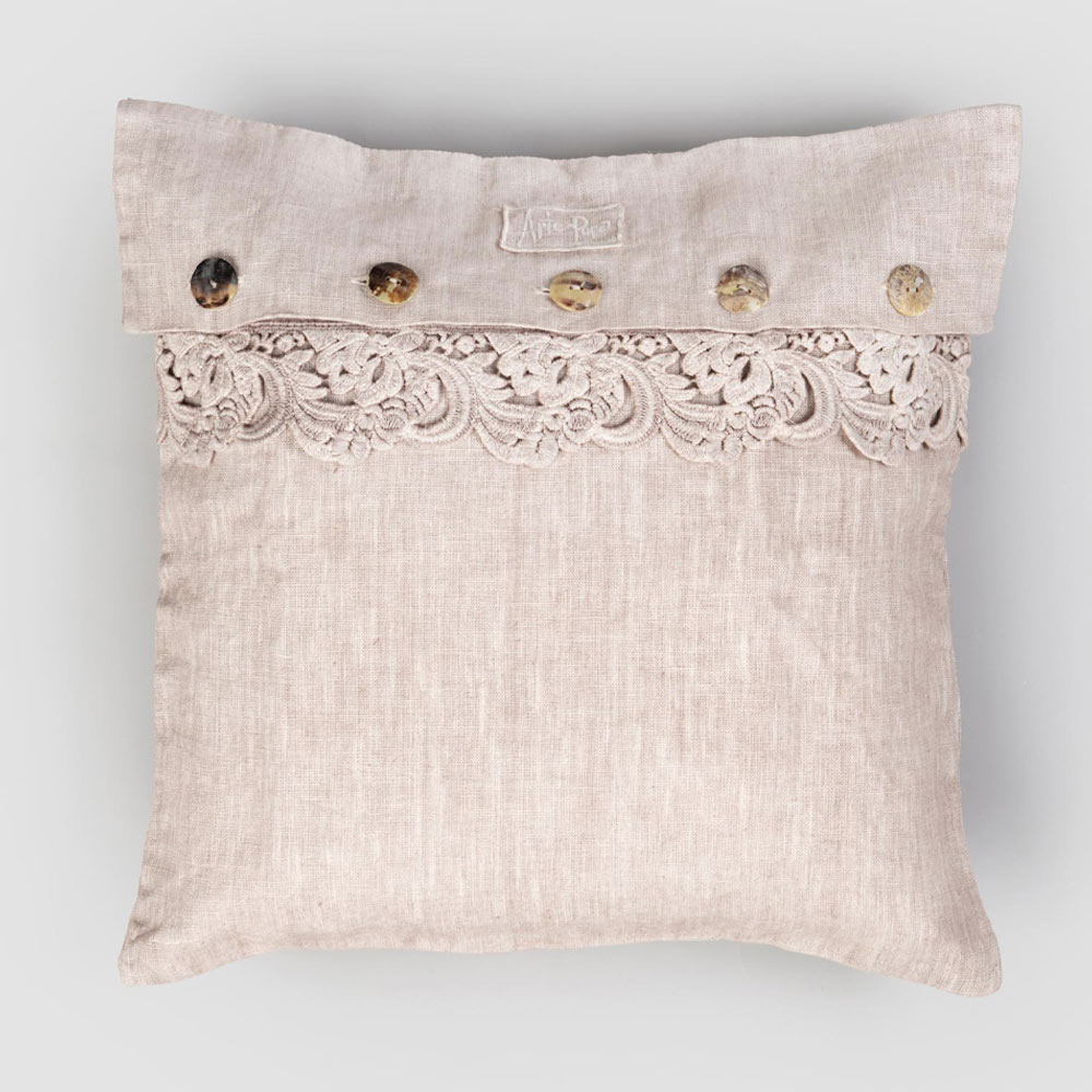 Square pillowcase in pure linen with harmony lace and buttons with flap, 2 colors made in Italy.