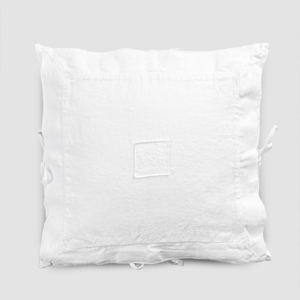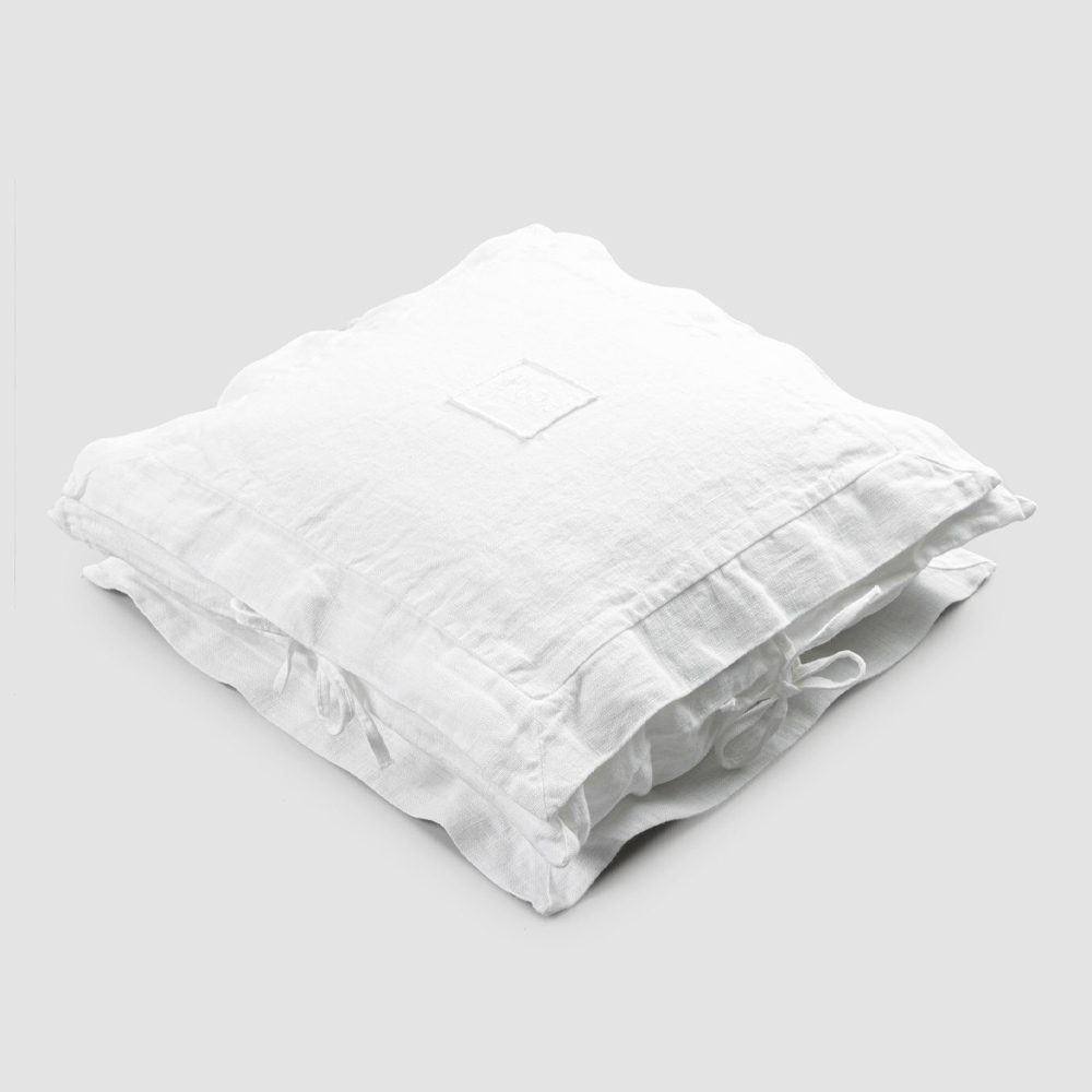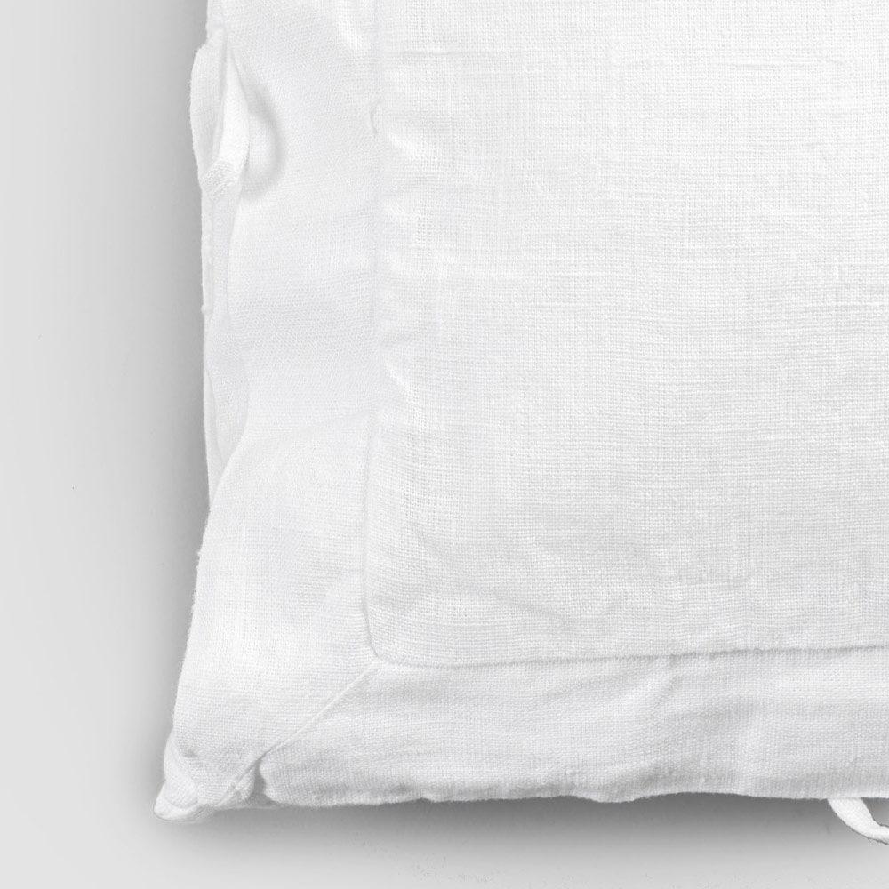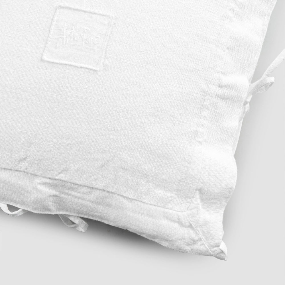 The value of tradition joins the modern lifestyle with this heavy white linen pillowcase with square decoration and ties on the sides.