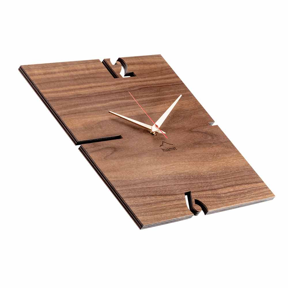 Modern square wall clock in oak, pine or walnut; handcrafted in Italy.