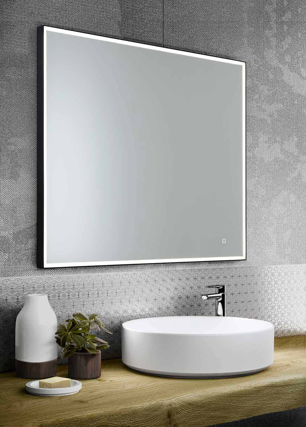 70x70 cm square wall mirror in aluminum with LED light Made in Italy.