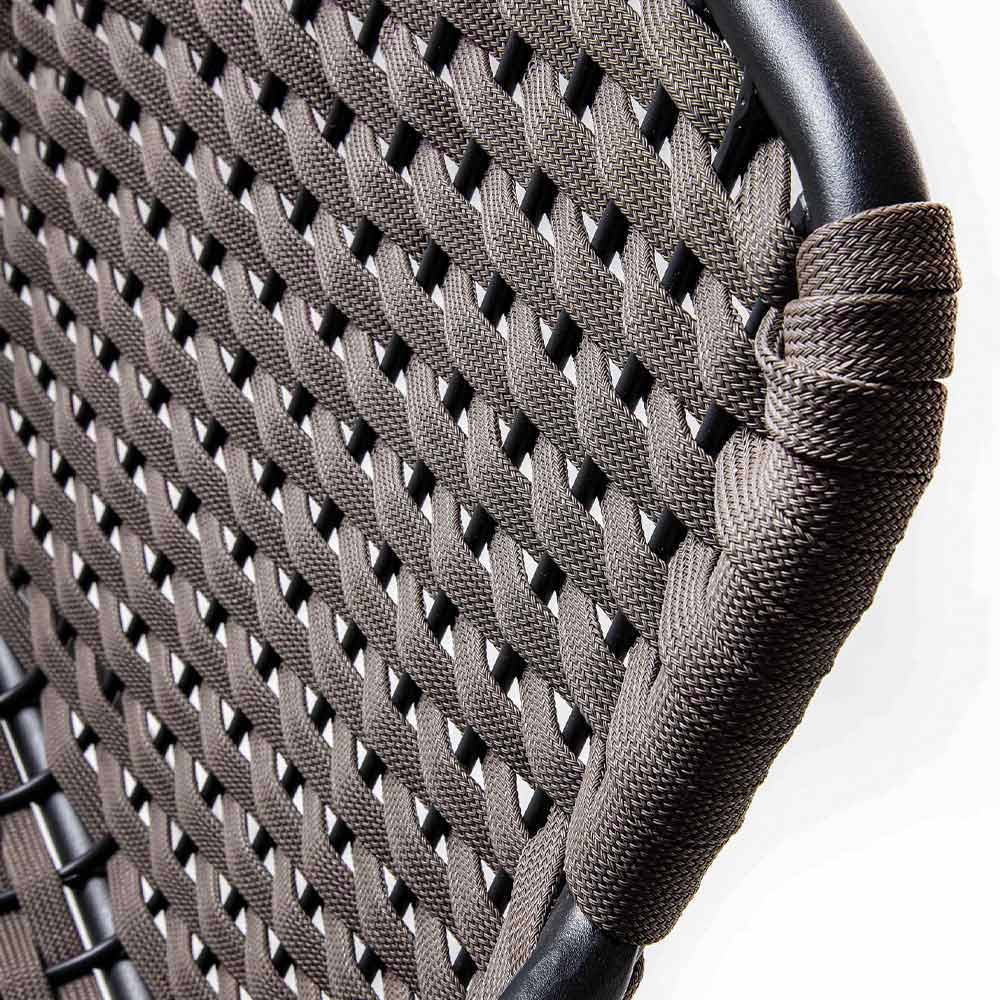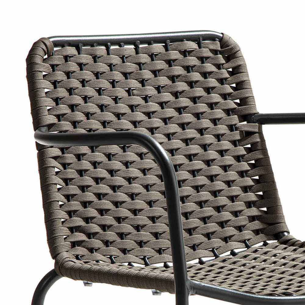 Garden chair made in Ā anthracite finish galvanized metal with seat and back in woven polyester rope (rubber interior) anthracite finish, equipped with armrests and stackable structure. From the encounter between an essential and versatile design and a functional and comfortable aesthetic , a seat is born that perfectly matches any outdoor situation, creating a perfect harmony with the other elements present or playing on wonderful style contrasts for an exclusive and stylish result. avant-garde .