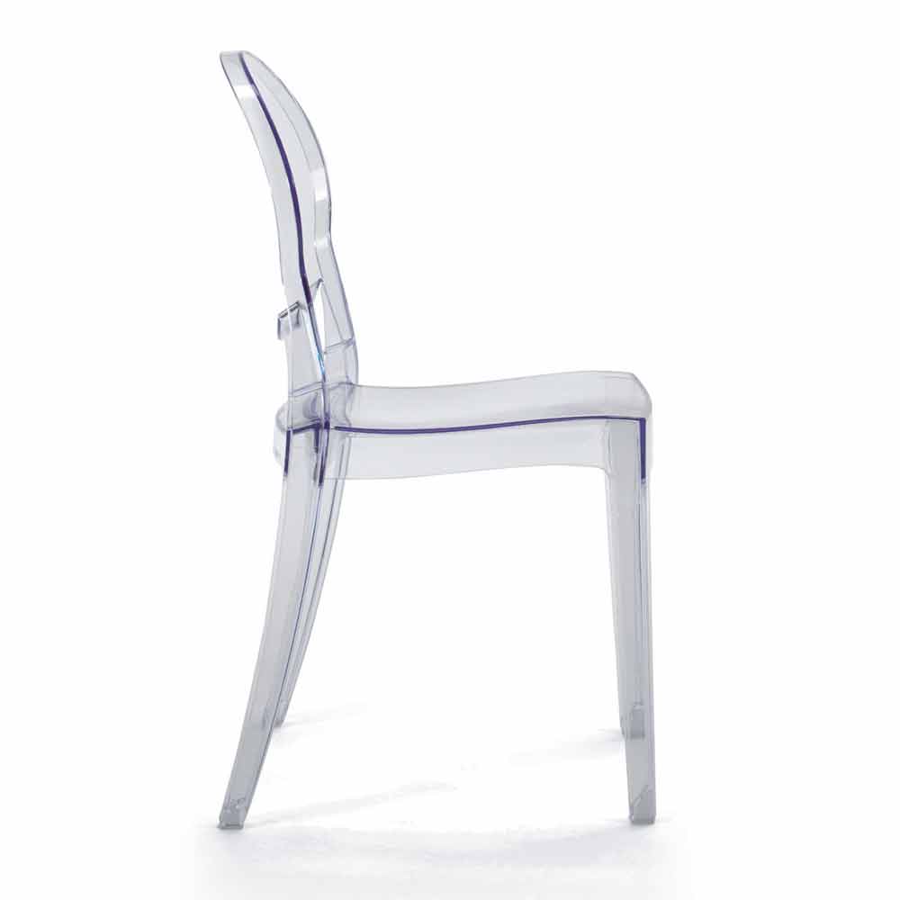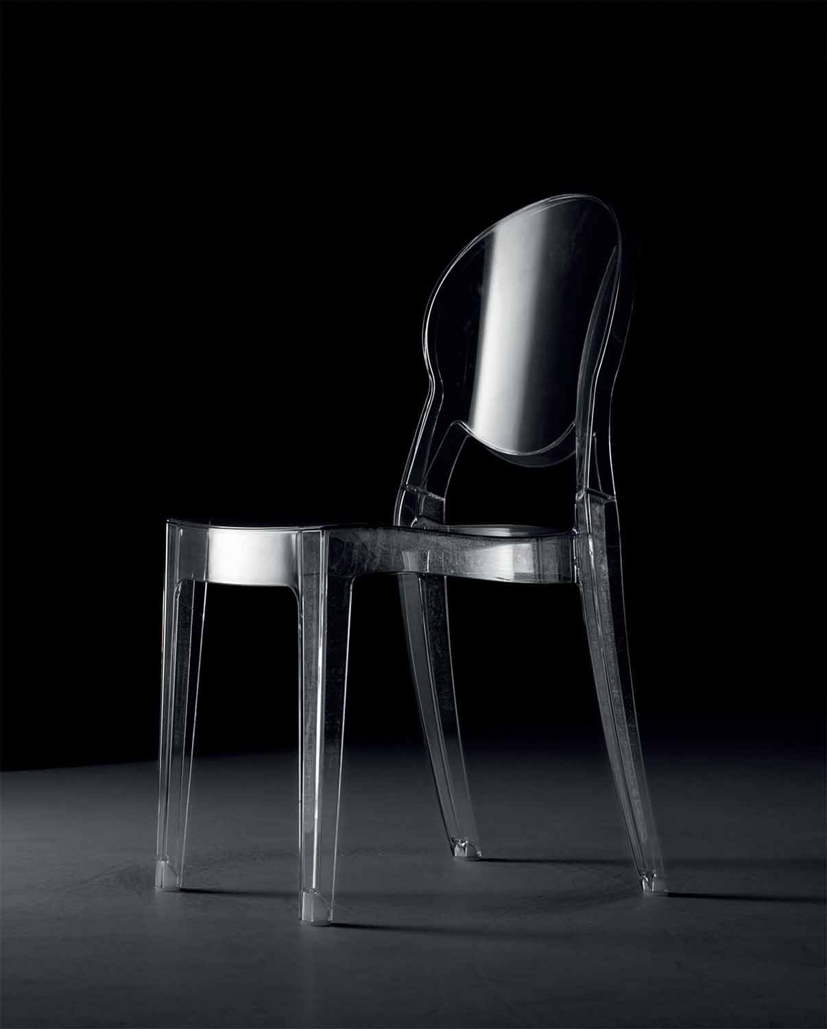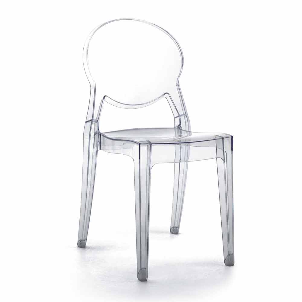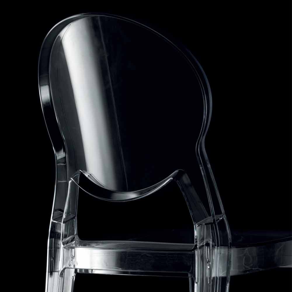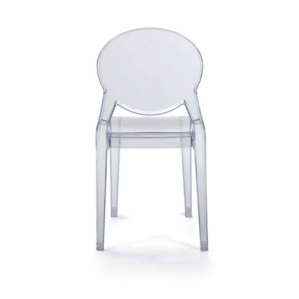 Stackable modern design chair suitable for outdoor and indoor use in transparent polycarbonate, made in Italy.