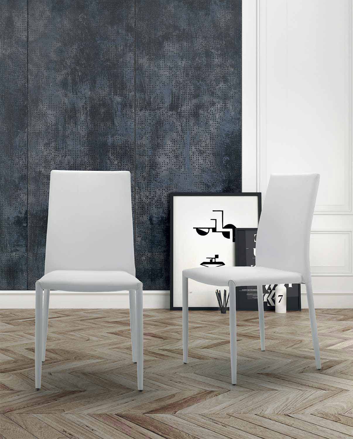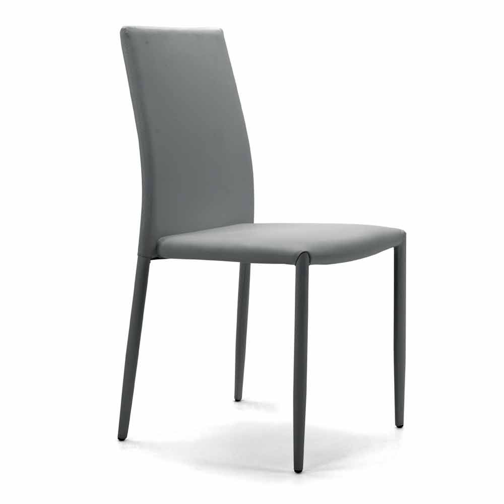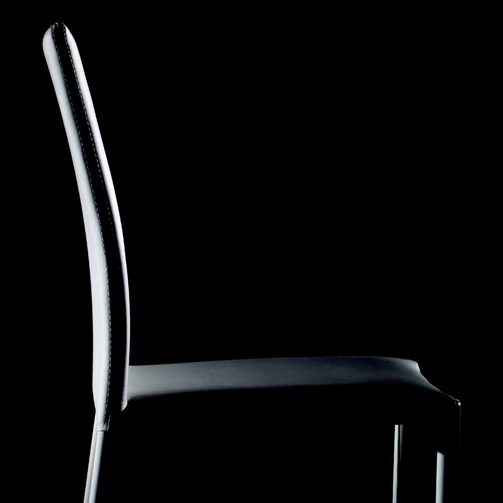 Upholstered chair for luxury dining room, stackable and completely covered in eco-leather; made in Italy.