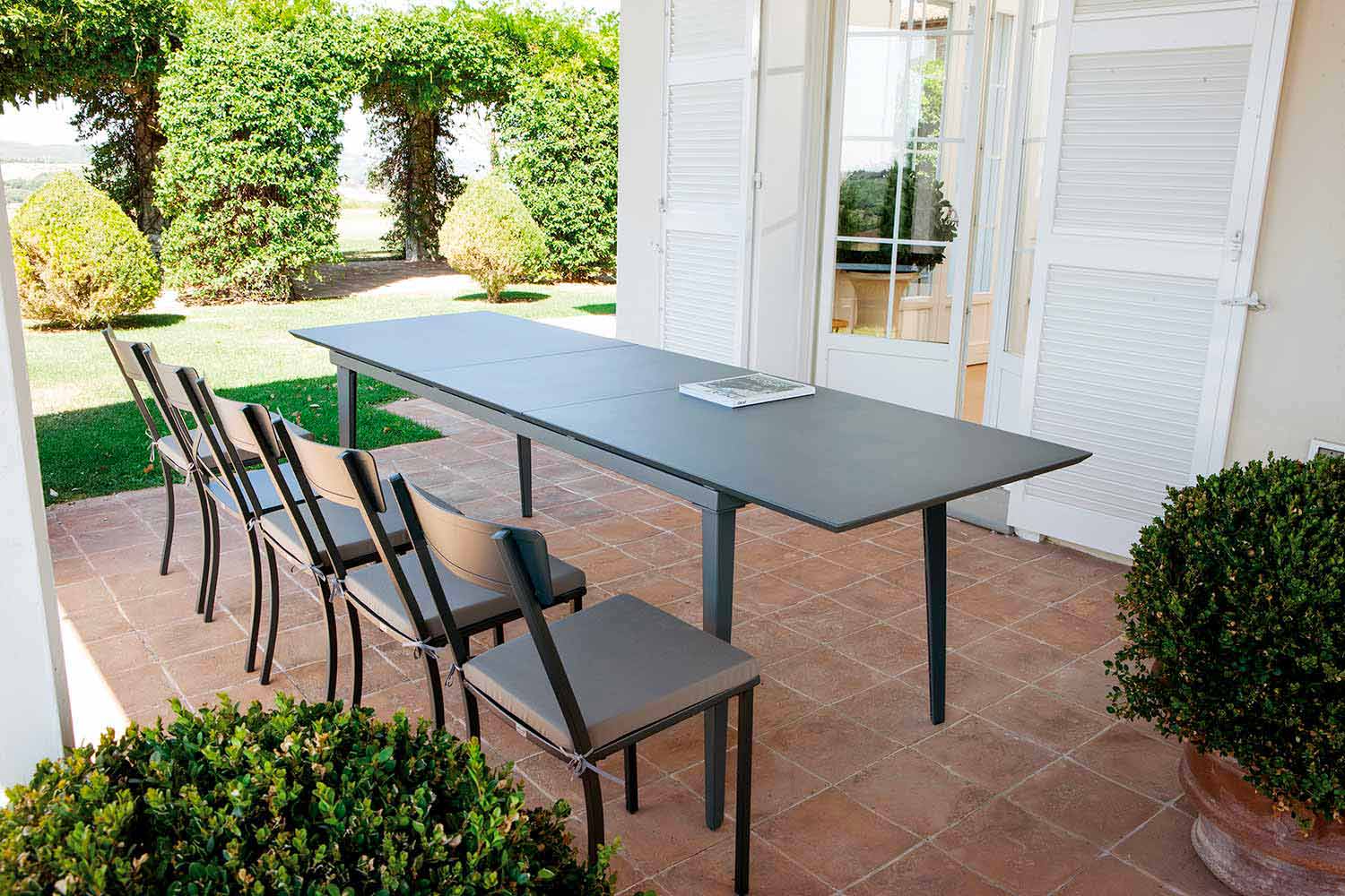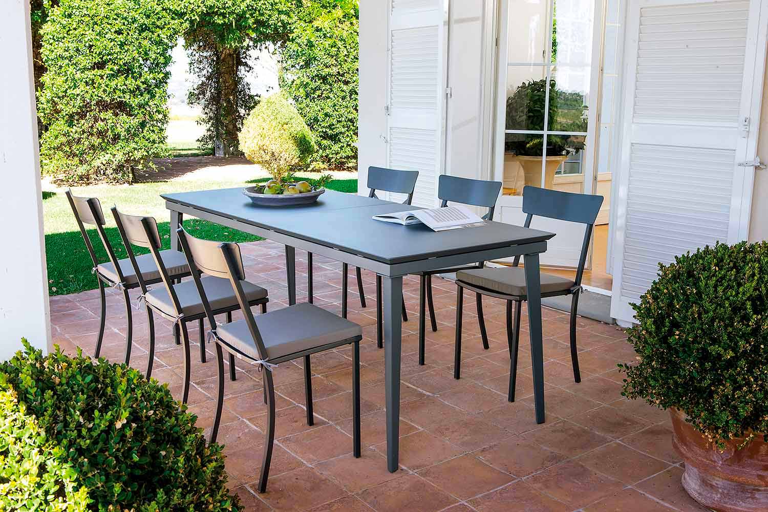 This line of outdoor products represents the perfect union between a wonderful visual effect and a minimal design and simple and light lines thanks to the first quality materials and innovative techniques which are involved in the process of production. Precisely the materials and techniques used, combined with all the strength of Made in Italy, give each product excellent durability and perfect resistance to all weather conditions. Thanks also to the delicate shapes and style that distinguish this line of products, they make it suitable for the most varied contexts, from the private one such as gardens and terraces to a contract environment such as bars and restaurants.