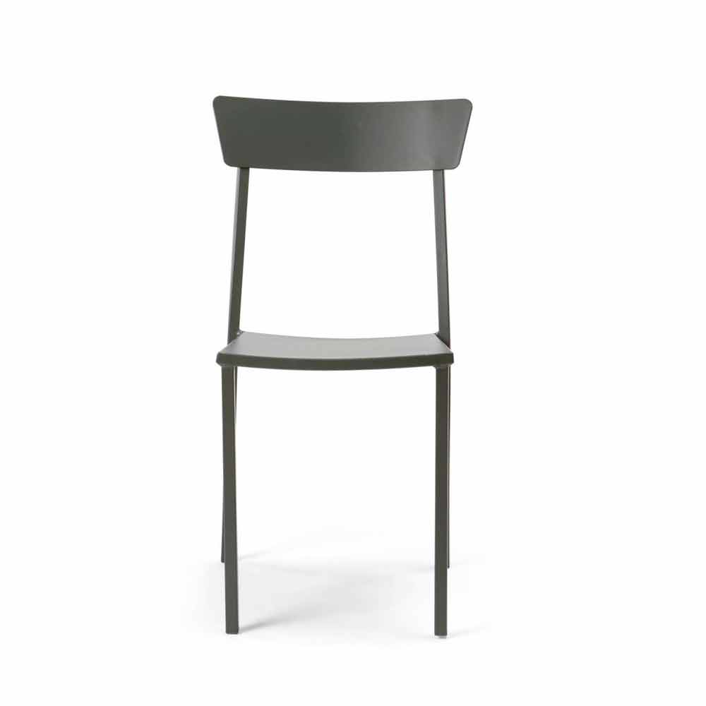 metal painted with thermosetting powders ideal for giving strength and solidity to each product, also allowing the colors and finishes of the surface to remain unchanged over time. Thanks to the wide range of colors available and the possibility of being stacked for greater space optimization, this chair perfectly matches any outdoor situation, from the most classic to the most modern and contemporary, giving personality and color.