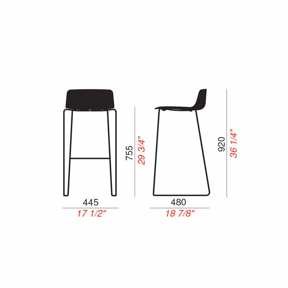 Measurements : - L 44.5 x P 48 x H 92 cm; - L 44.5 x P 48 x H 82 cm.