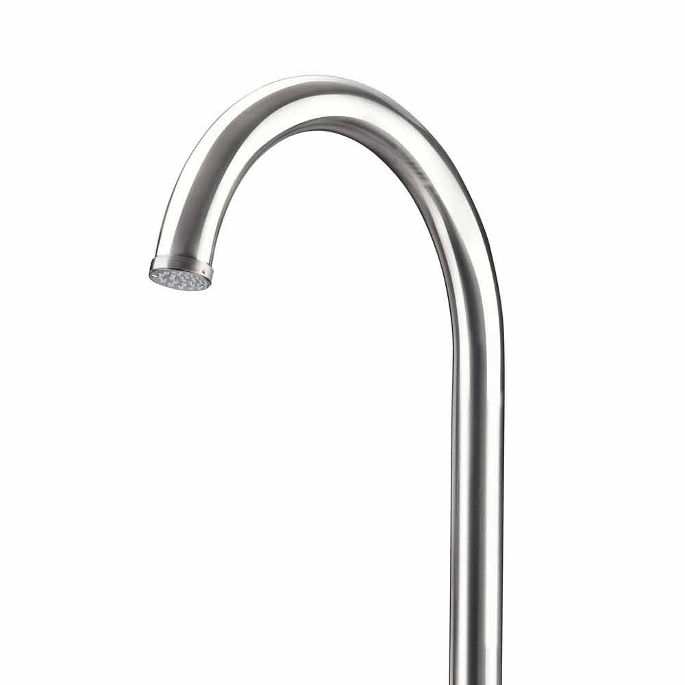Garden shower column made in Italy in polished AISI 316L stainless steel (thickness 2 mm). Thanks to its simple and elegant design, this product for outdoor furniture is a perfect solution for the most varied outdoor areas such as bathing establishments and tourist facilities but also private environments such as swimming pools and gardens. The variant with built-in shower head allows to obtain an even more minimal product but with a particularly original and avant-garde personality while the version with round shower head is characterized by more traditional but still modern lines and an elegant style. Both solutions ensure a strong visual impact and are able to characterize the surrounding environment thanks to their unique personality. The practical hand shower with flexible hose also allows to obtain an even higher level of functionality while enriching the aesthetics of the product and the entire environment.