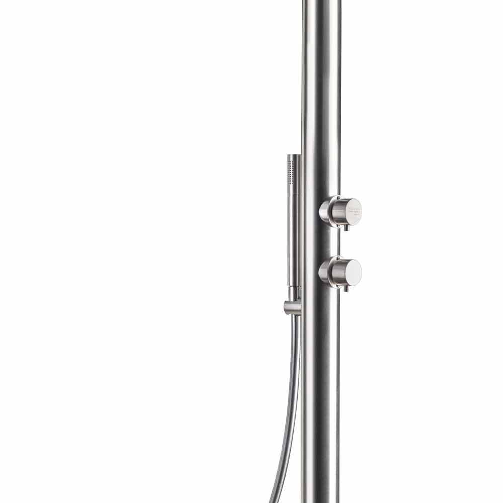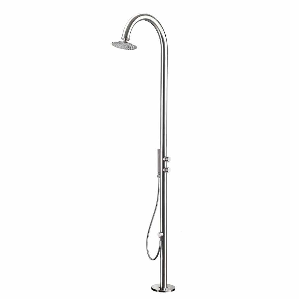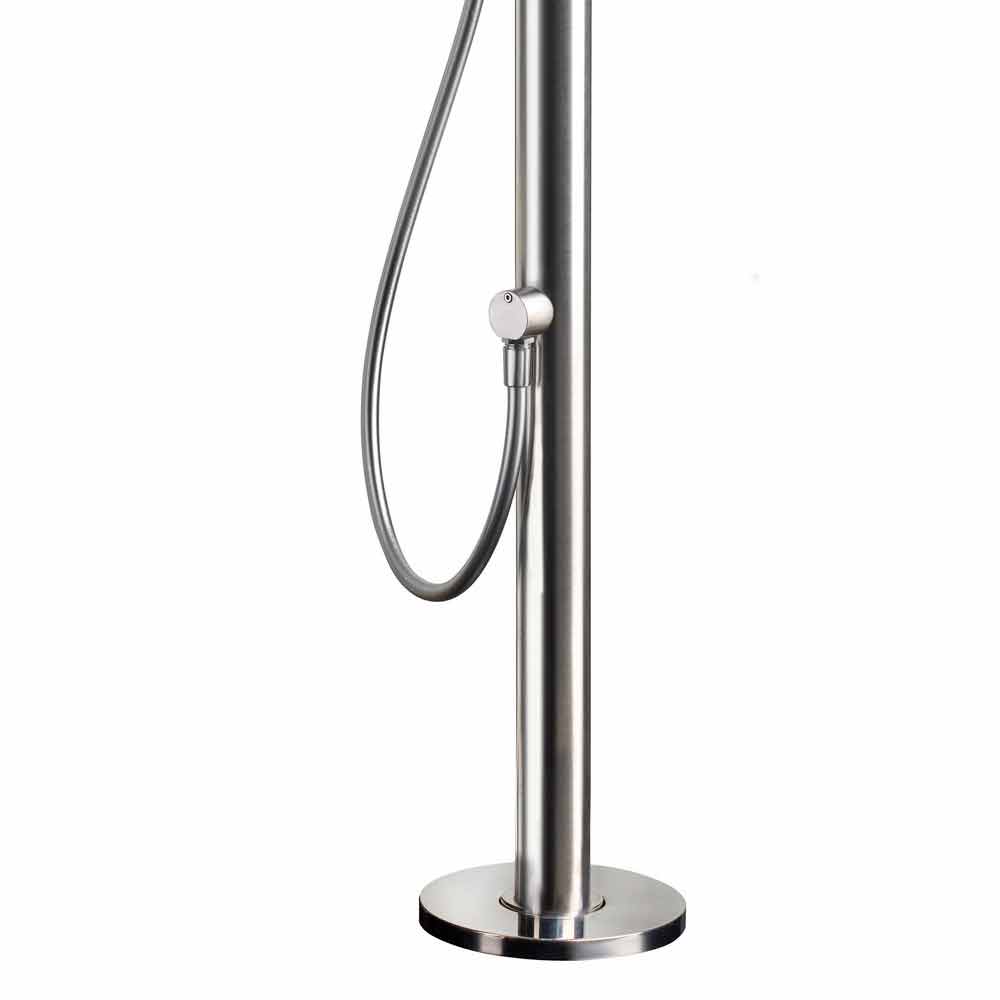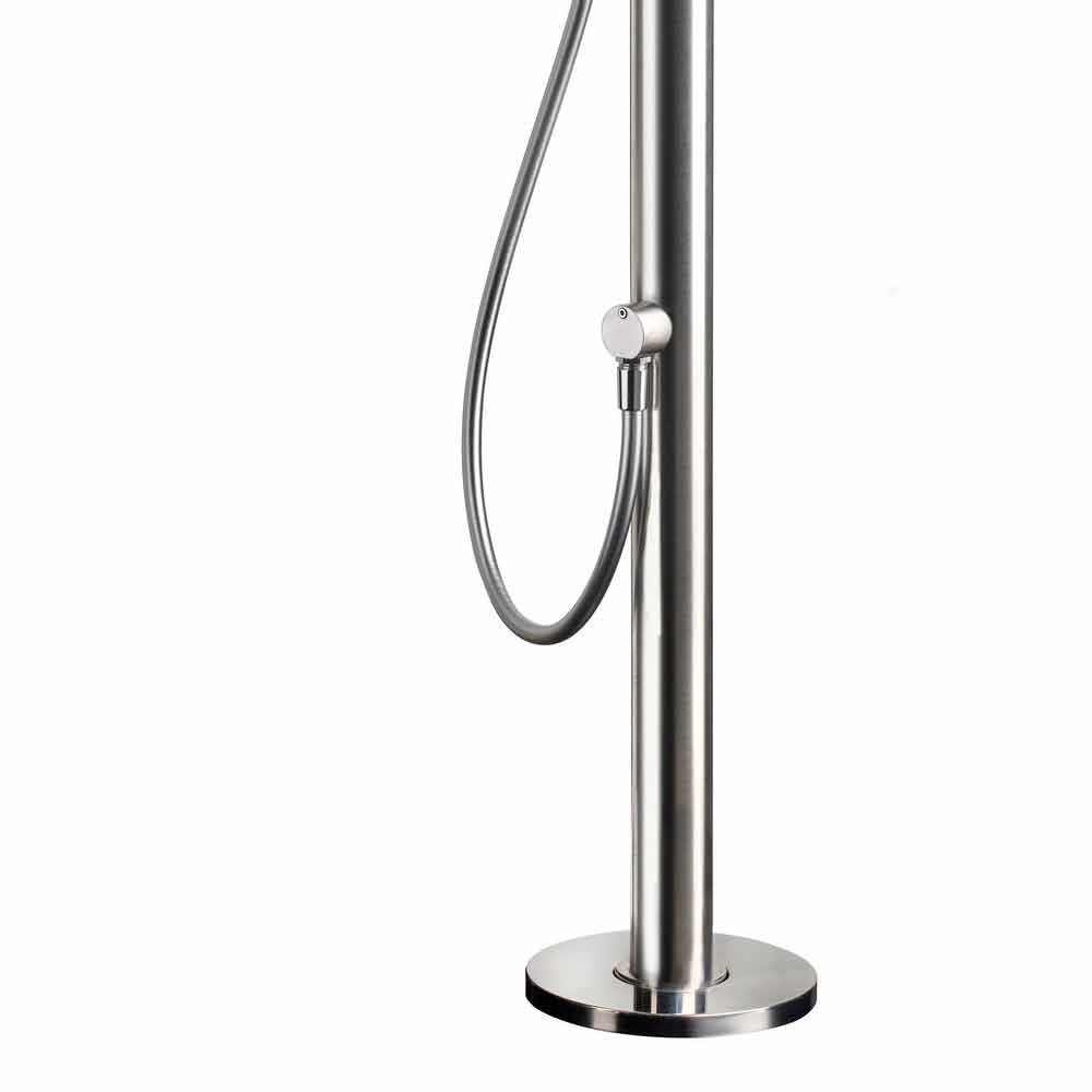 High quality outdoor shower in chromed stainless steel with Made in Italy hand shower.