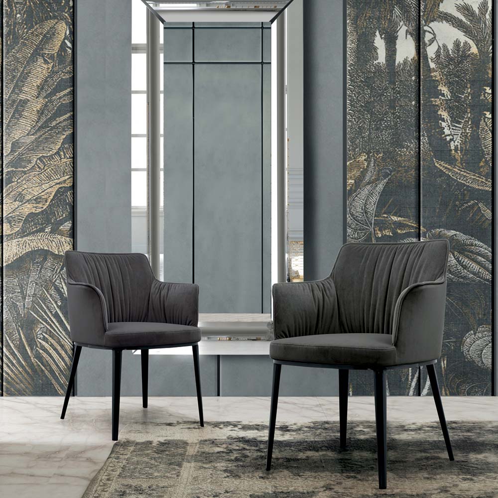 Dining room chair in velvet and black steel, high quality Made in Italy.