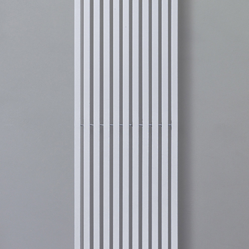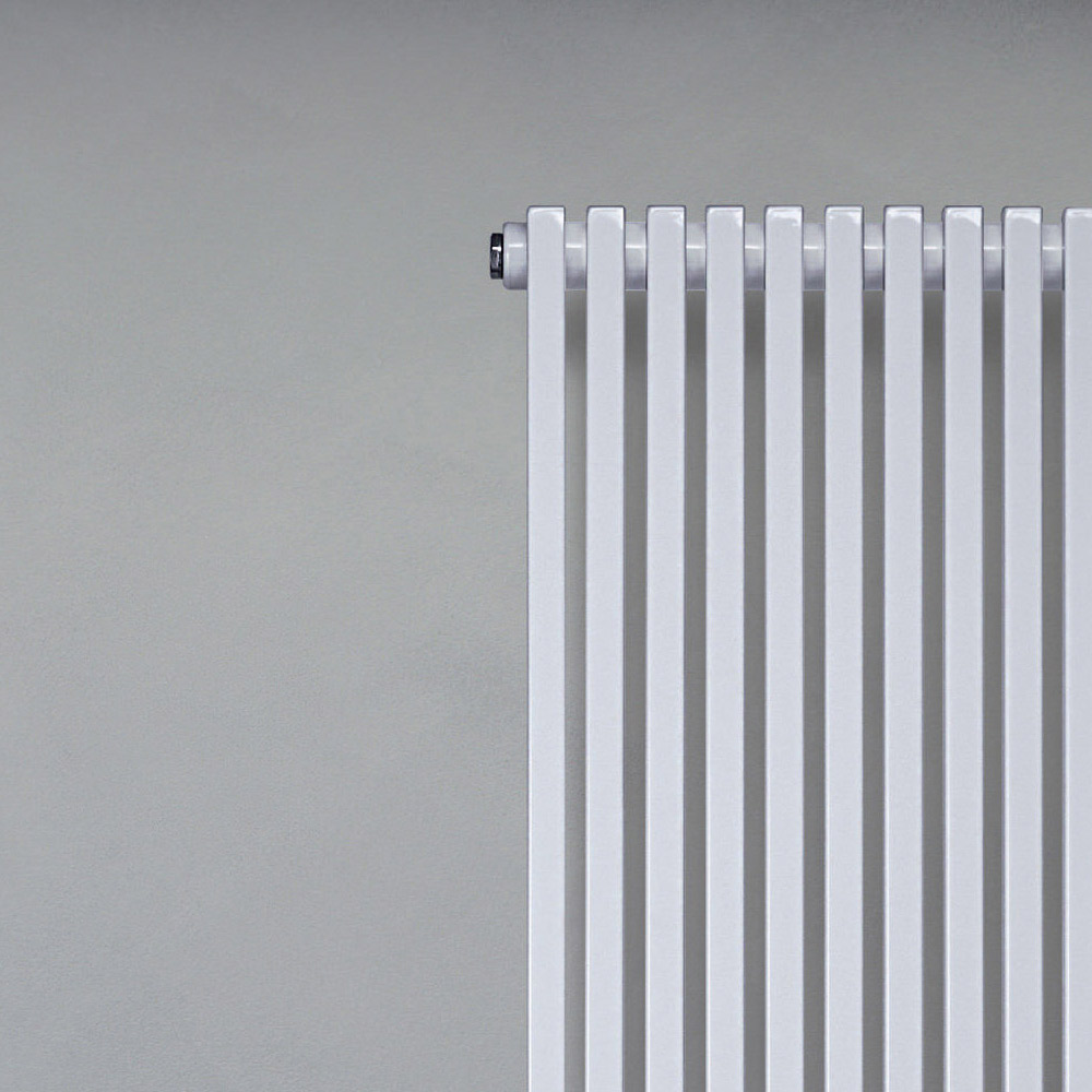 Hydraulic radiator in carbon steel with traffic white finish consisting of a series of 2 cm square section vertical elements welded onto 3.5 cm diameter horizontal manifolds , entirely made in Italy with wall fixing kit, vent valve and blind cap included . A development path marked by quality, innovation, and manufacturing excellence has laid the foundation for the creation of this product, which combines cutting-edge technology and Italian craftsmanship . This element completes and personalizes any space, satisfying the needs and desires of increasingly attentive and demanding users.