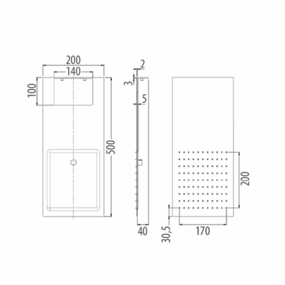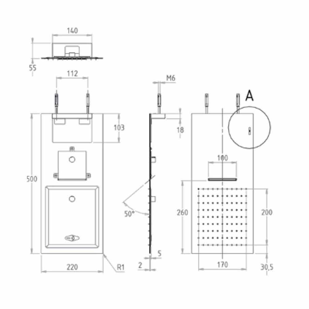 wall-mounted shower head in ultraslim anti-limescale steel;