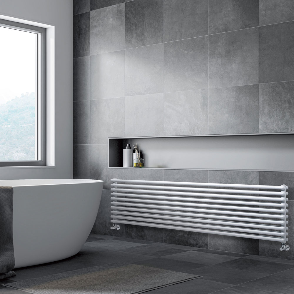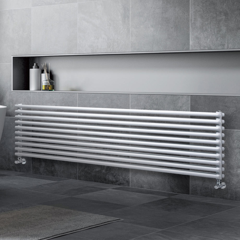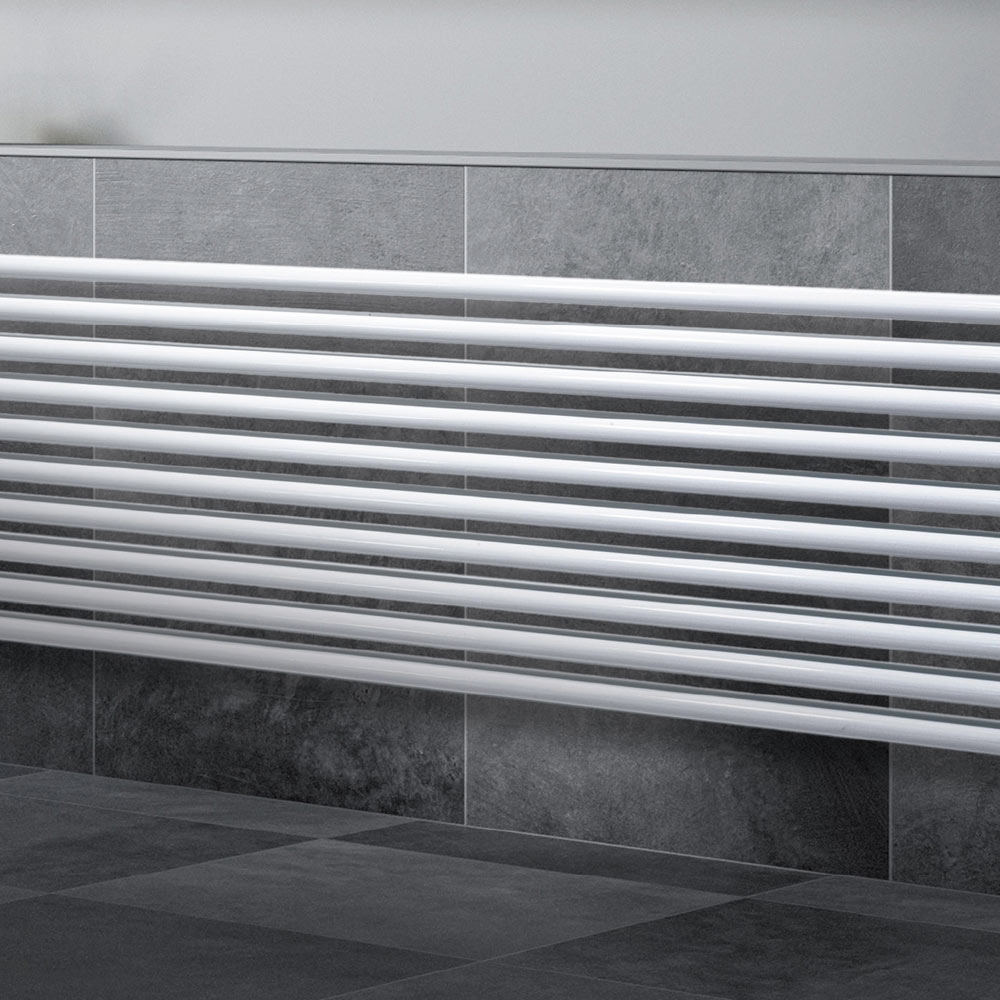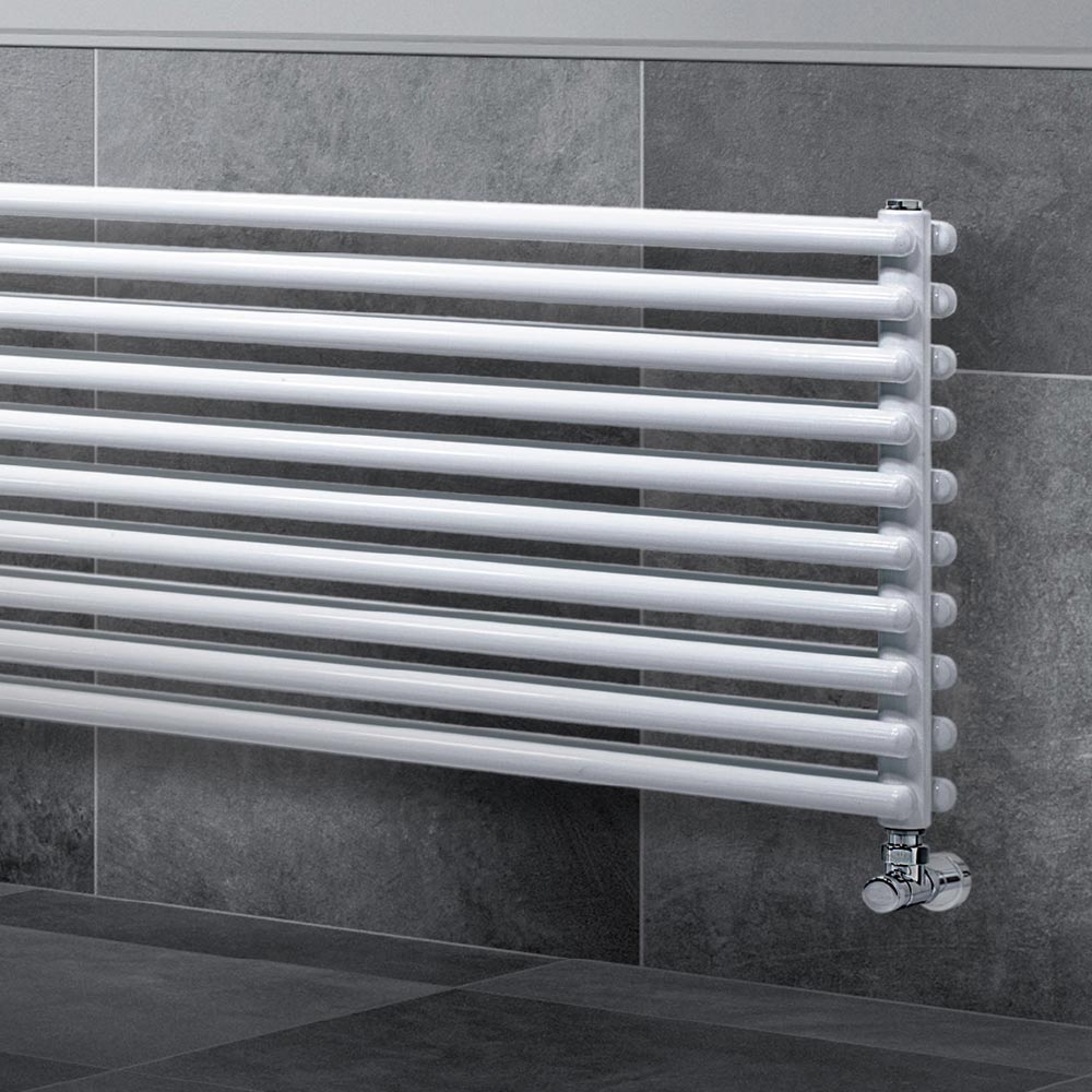 Hydraulic radiator in carbon steel with a pure white glossy finish consisting of a double series of horizontal elements with a diameter of 2.5 cm welded onto vertical manifolds with a diameter of 3.5 cm, entirely made in Italy with wall fixing kit, vent valve and blind cap included . Design and functionality combine to create a unique and efficient piece that complements any decor. It's a product made with cutting-edge technologies using highly reliable and durable materials in a factory in the province of Treviso, just outside Venice, to guarantee the quality of Made in Italy craftsmanship.