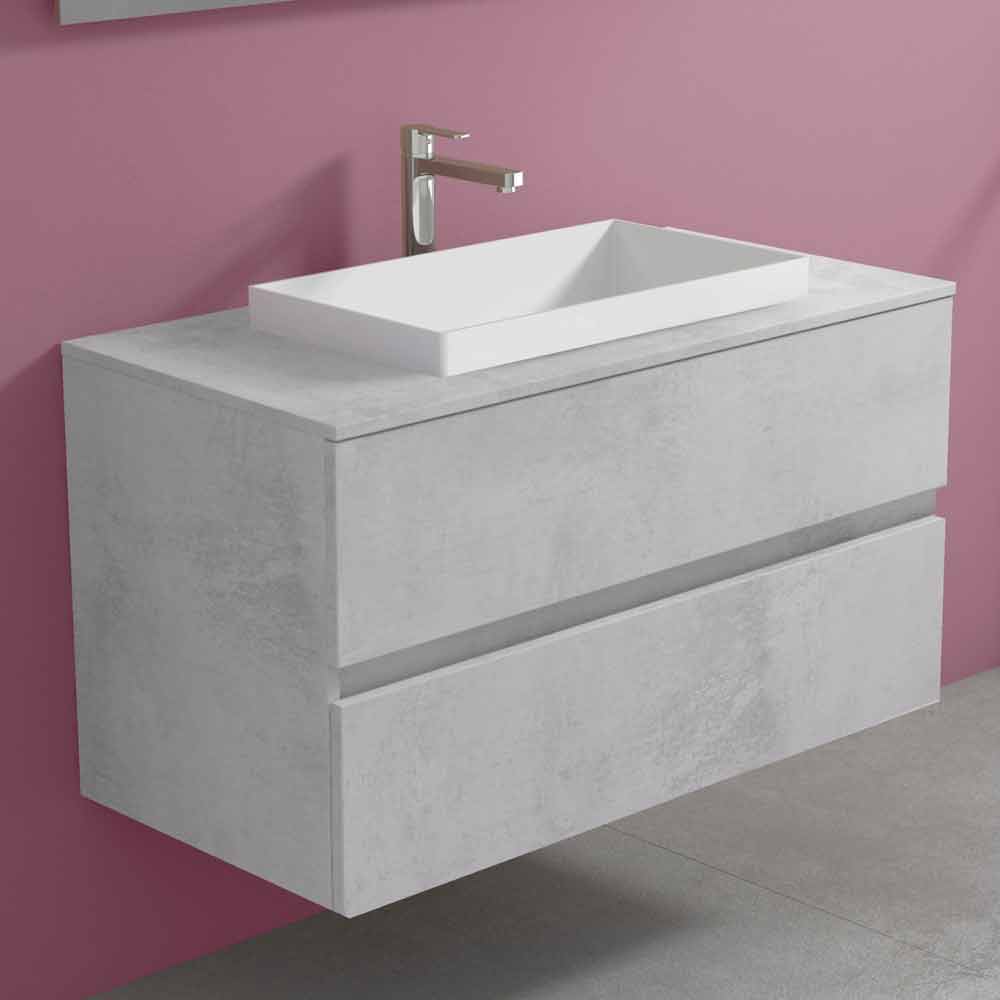 This suspended bathroom furniture with rectangular built- in washbasin has a modern and timeless design, available in four finishes to better adapt to the destination environment.