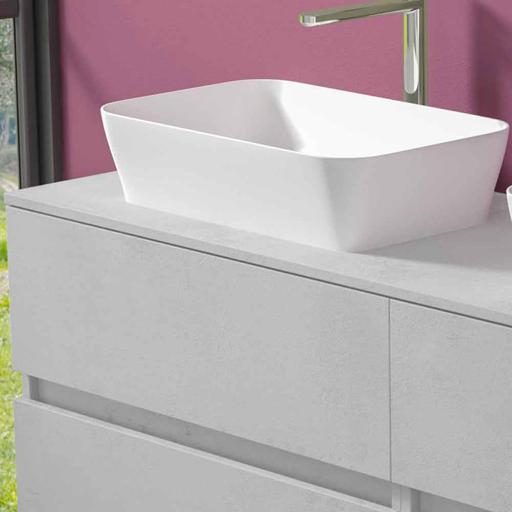 The two rectangular countertop washbasins are made of Solid matt, an opaque white mineral resin , and finished in opaque gelcoat, which makes the product waterproof.