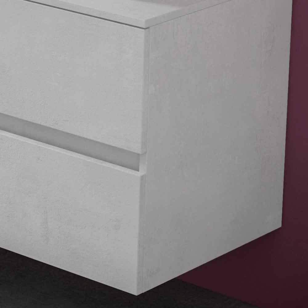 The washbasin base consists of two cabinets with a standard drawer and a shaped drawer each and is made of laminated and water-repellent hydro W 100 wood fiber , in order to ensure greater durability and prevent the cabinet from being damaged in contact with the water.