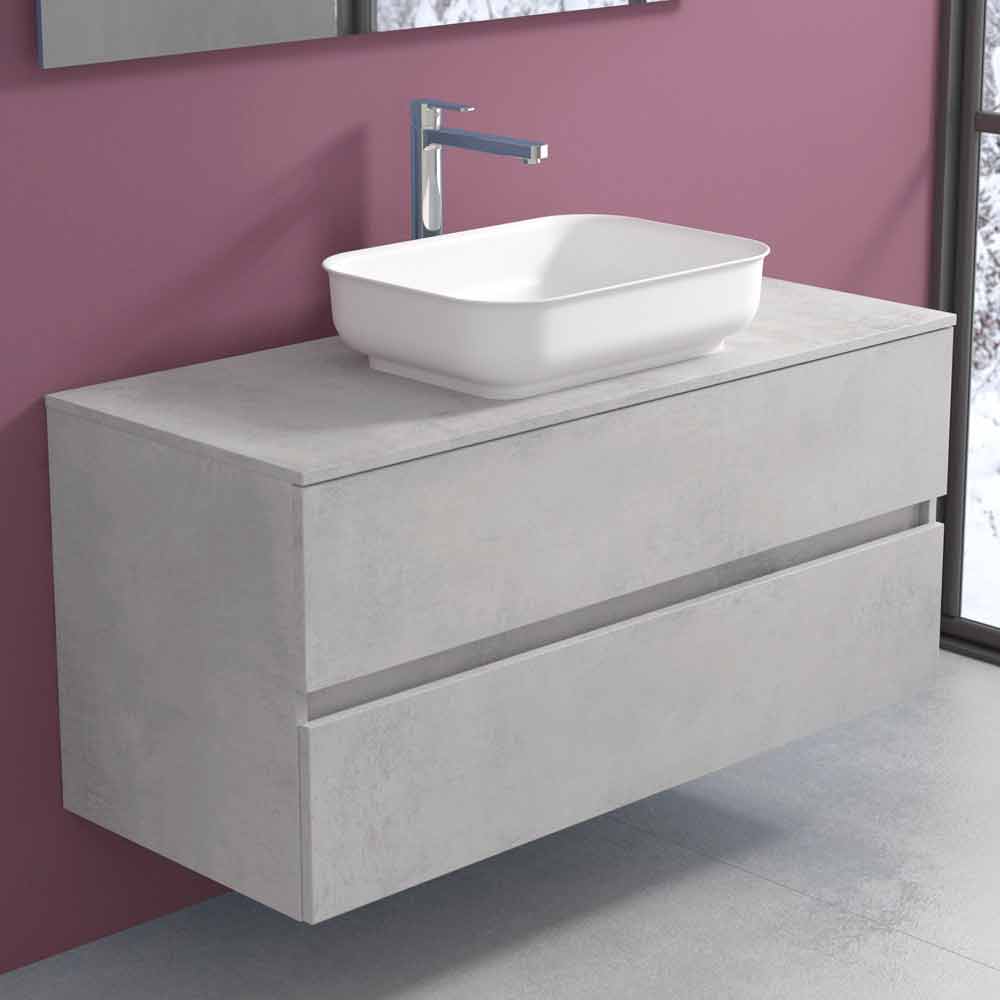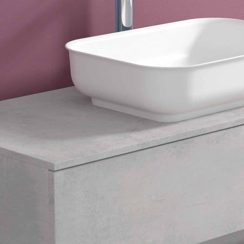 This suspended bathroom furniture with rectangular countertop washbasin is available in four finishes to best adapt to the environment and create an elegant and welcoming atmosphere.