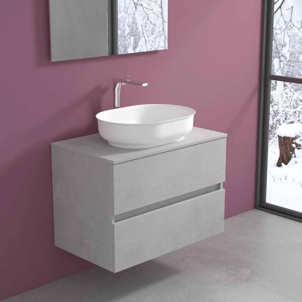 It is a suspended bathroom furniture with countertop washbasin with an original oval shape able to guarantee not only practicality and functionality but also a sophisticated and modern atmosphere, for a timeless design.