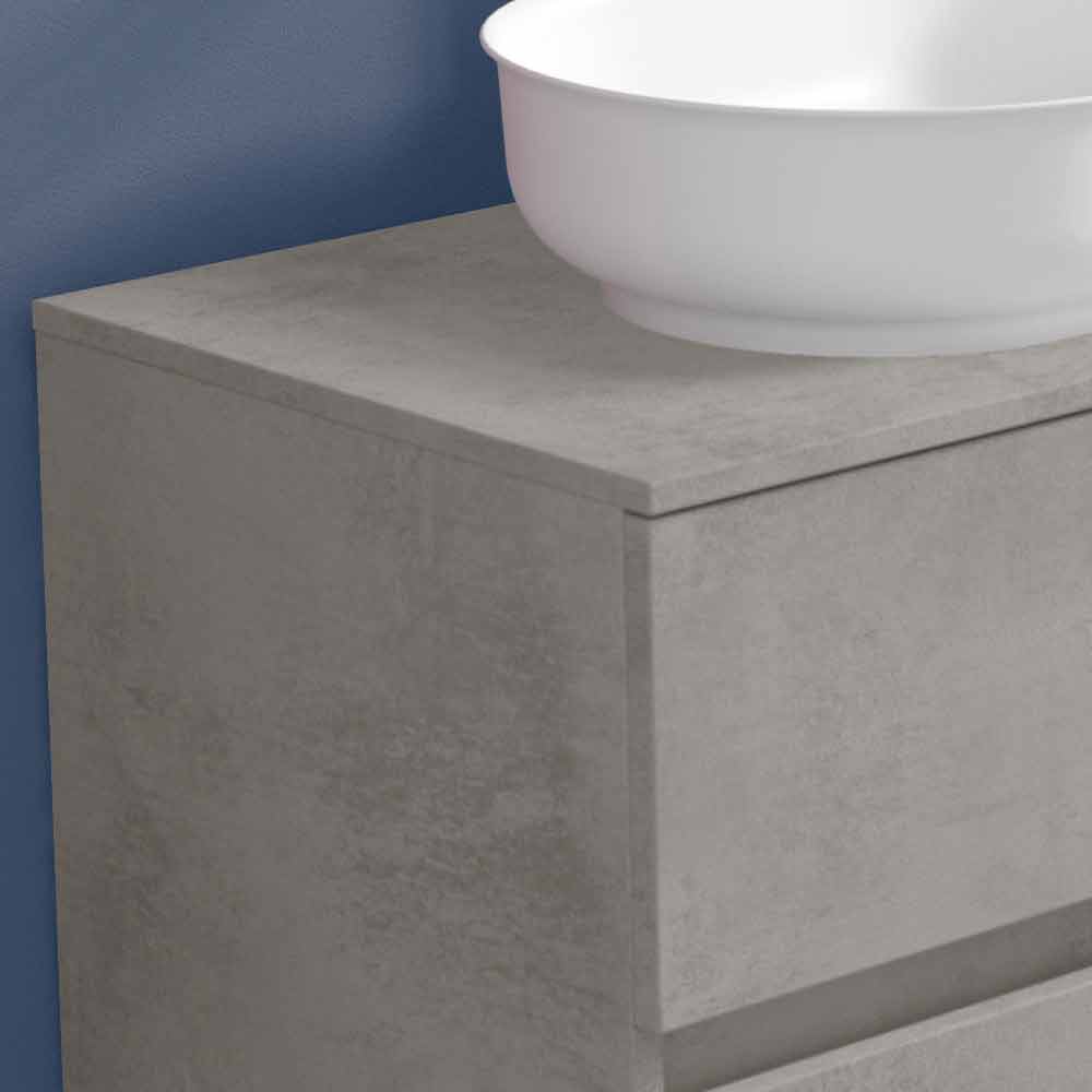 The washbasin base with 1 standard drawer and 1 shaped drawer is made of laminated and water-repellent hydro W 100 wood fiber , in order to ensure greater durability and prevent the cabinet from being damaged in contact with water.