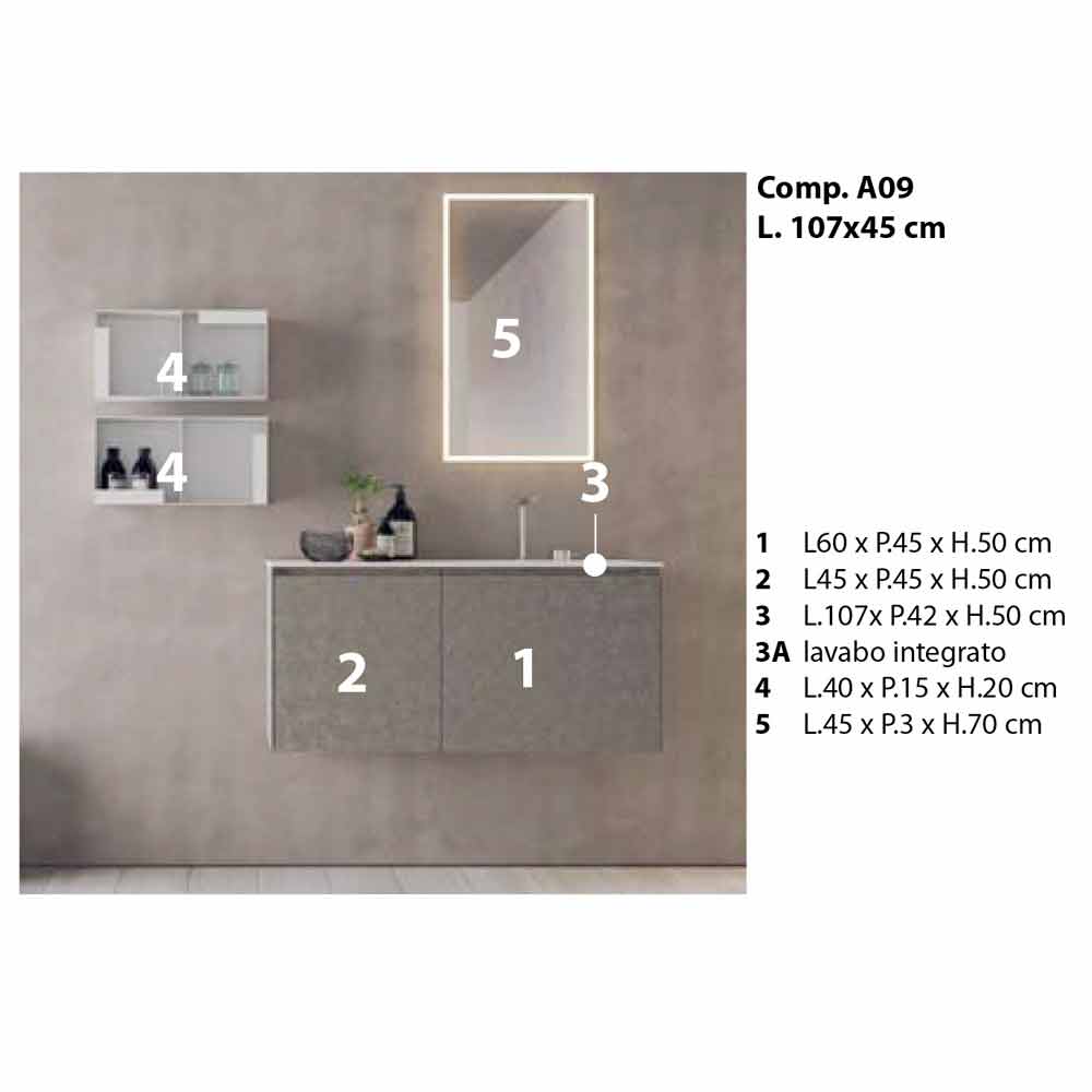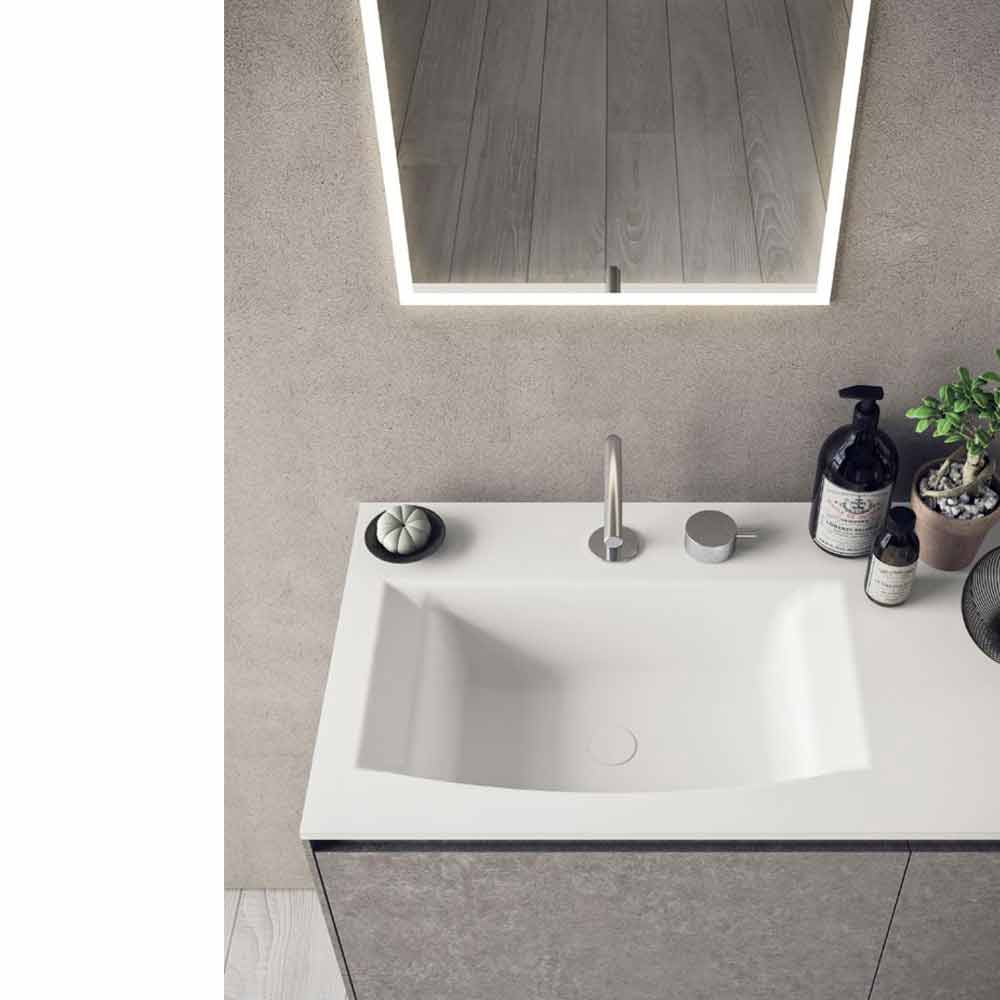 The peculiarity of this composition is given by the built-in washbasin characterized by two lateral sides that gently descend towards the basin.