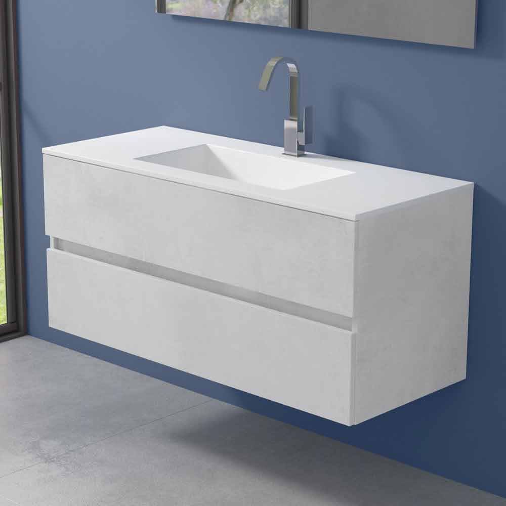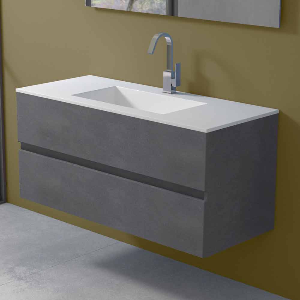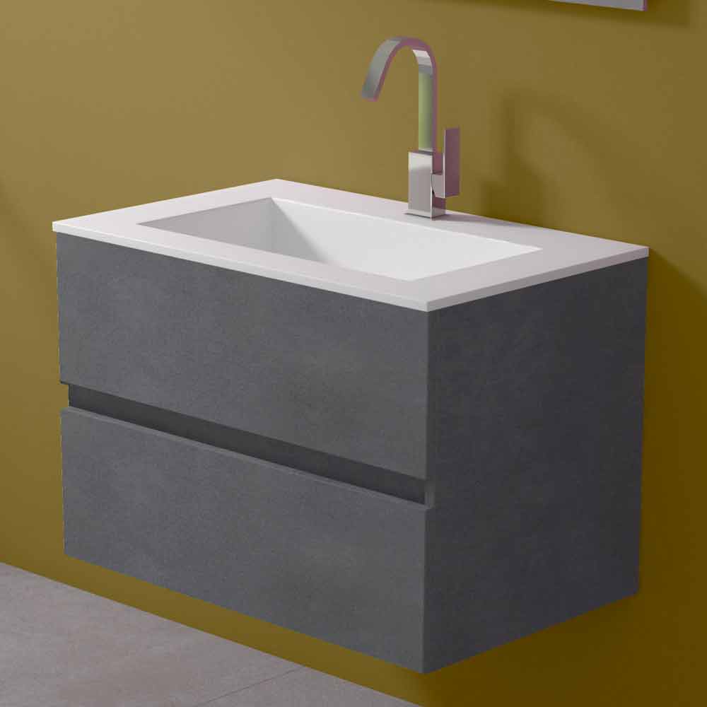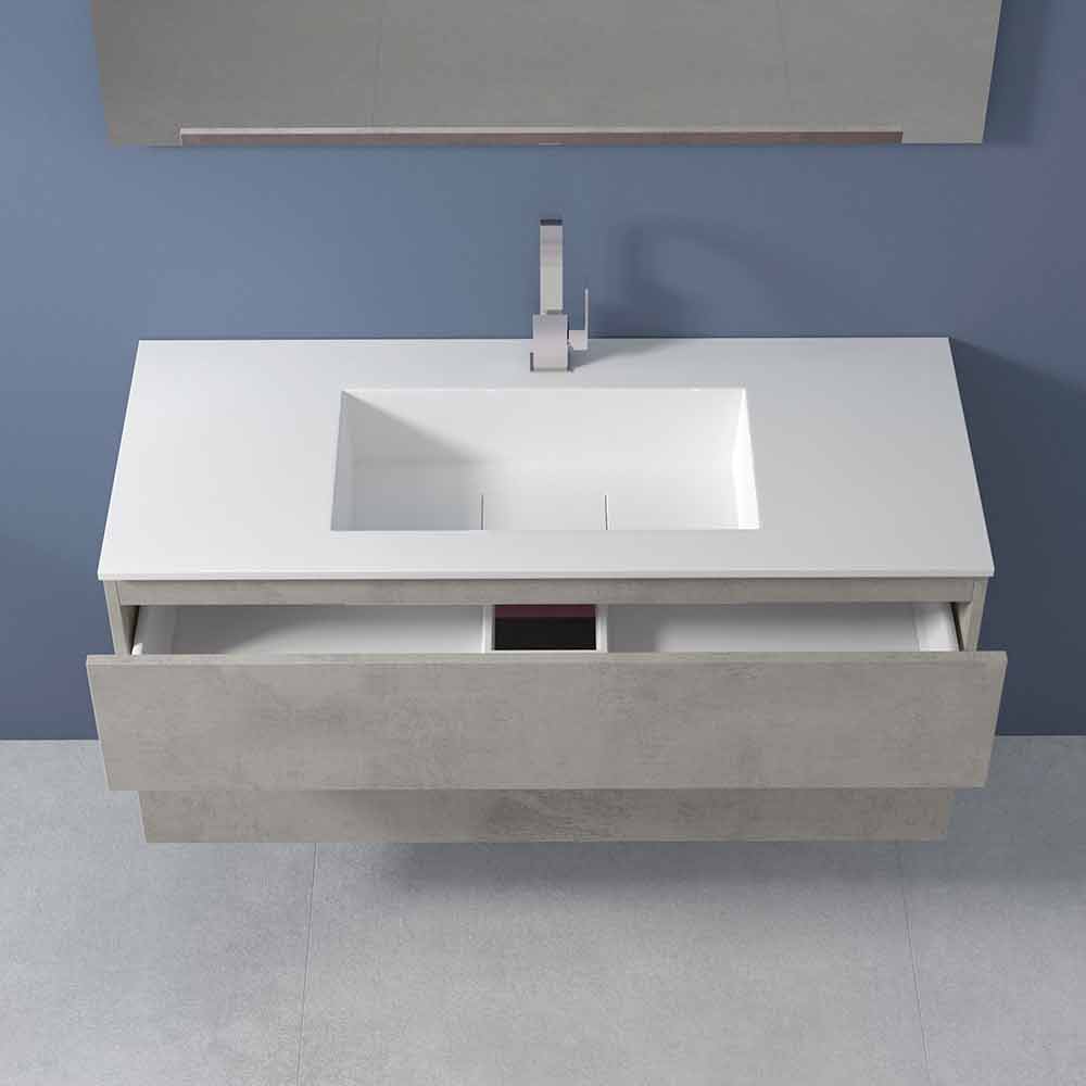 It is a suspended bathroom furniture with integrated rectangular washbasin capable of guaranteeing not only practicality and functionality but also a sophisticated and modern atmosphere, for a timeless design.