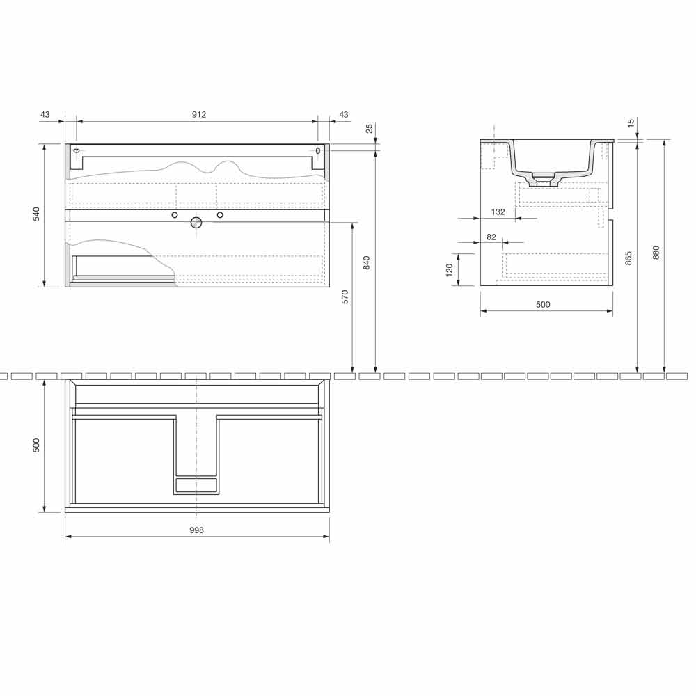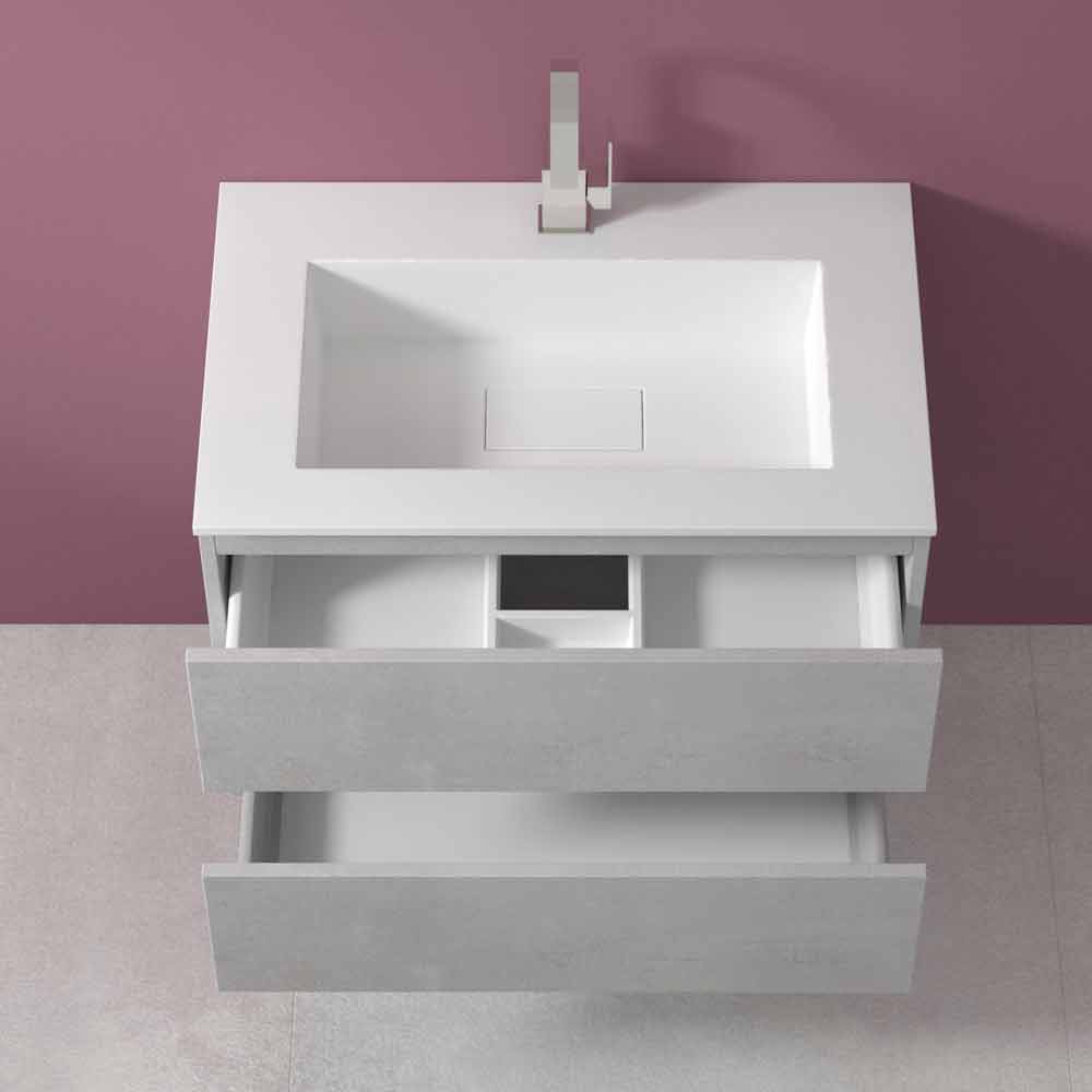 The washbasin base with a standard drawer and a shaped drawer is made of laminated and water-repellent hydro W 100 wood fiber , in order to ensure greater durability and prevent the cabinet from being damaged in contact with water.