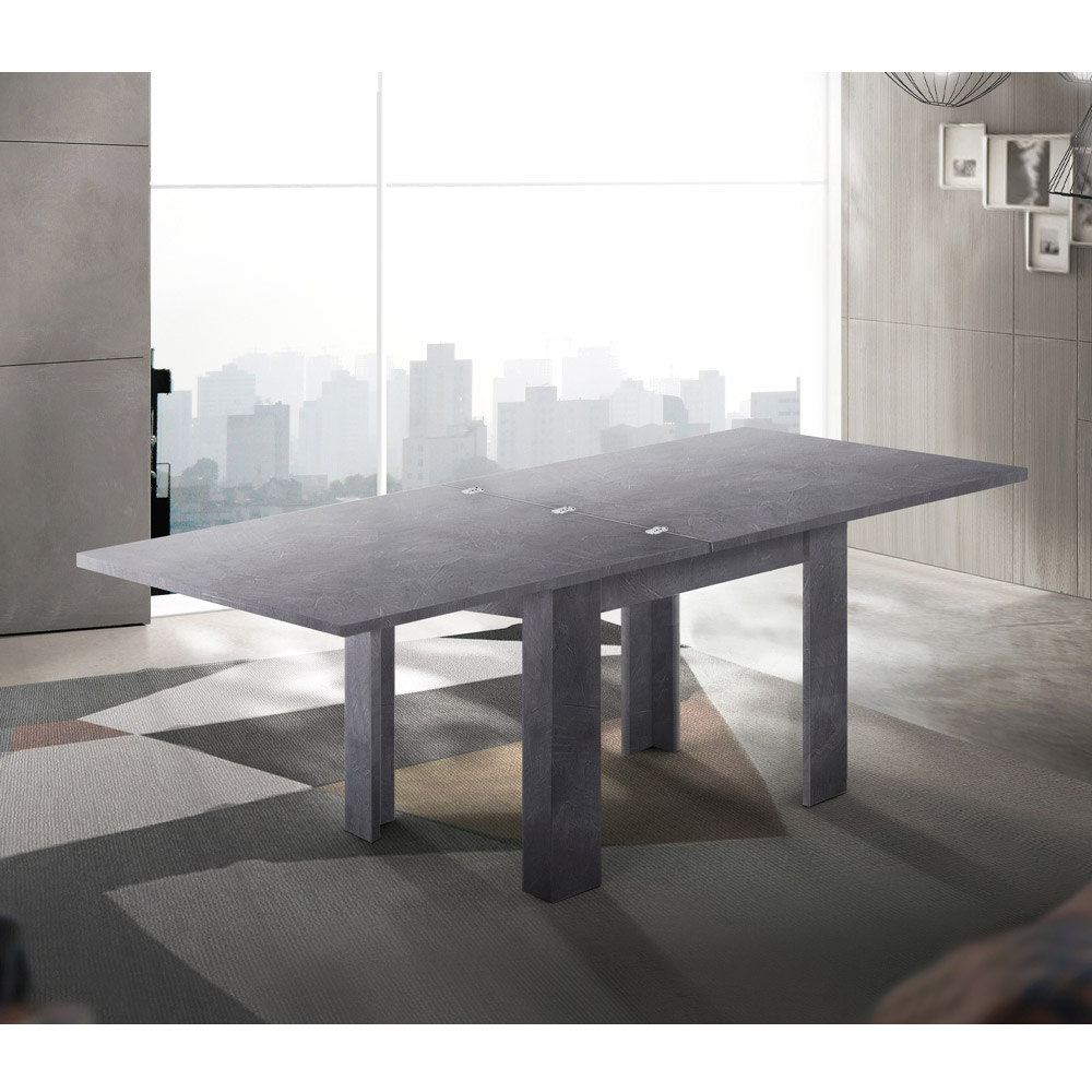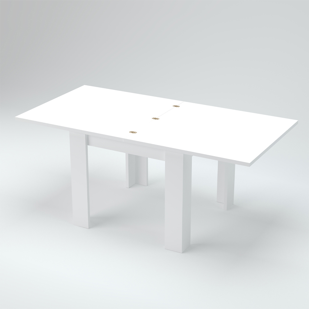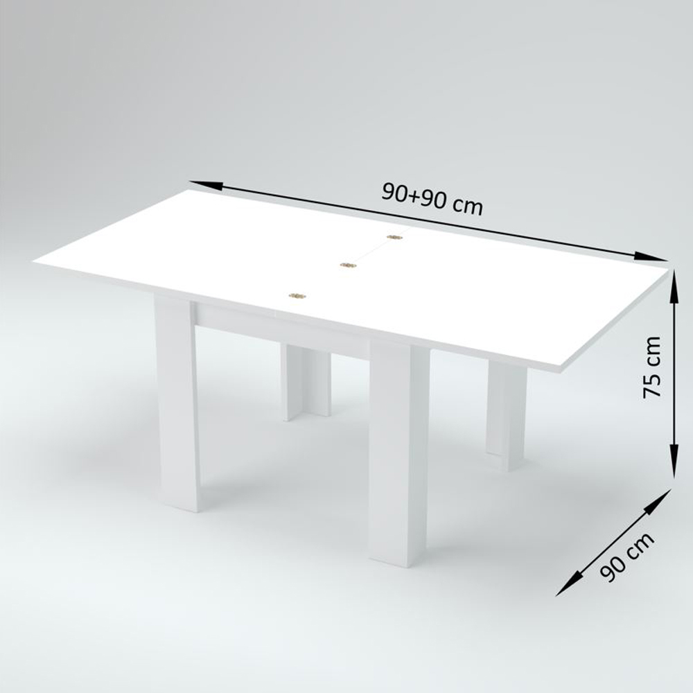 The extendable folding dining table has a square design that is characterized by clean and minimal lines.