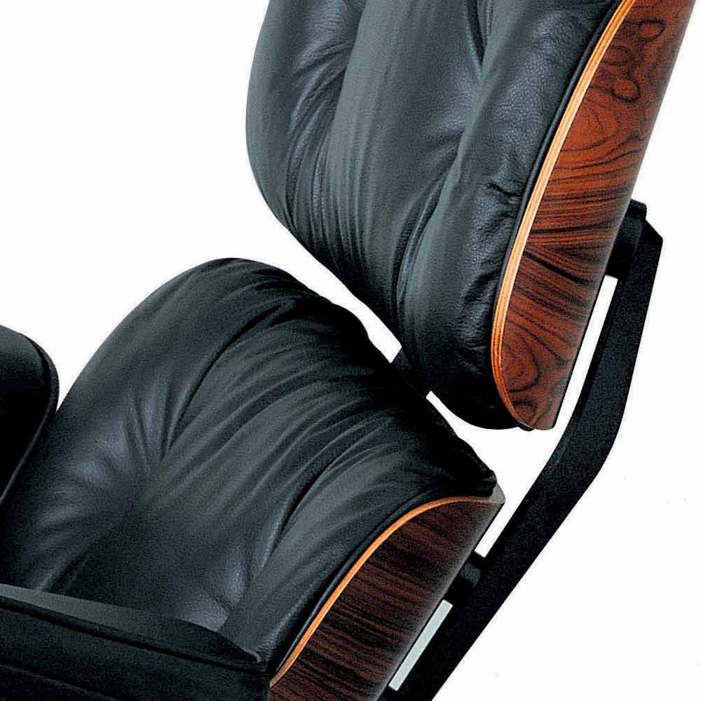 Swivel armchair in wood with leather upholstery equipped with footrest, high quality Made in Italy.