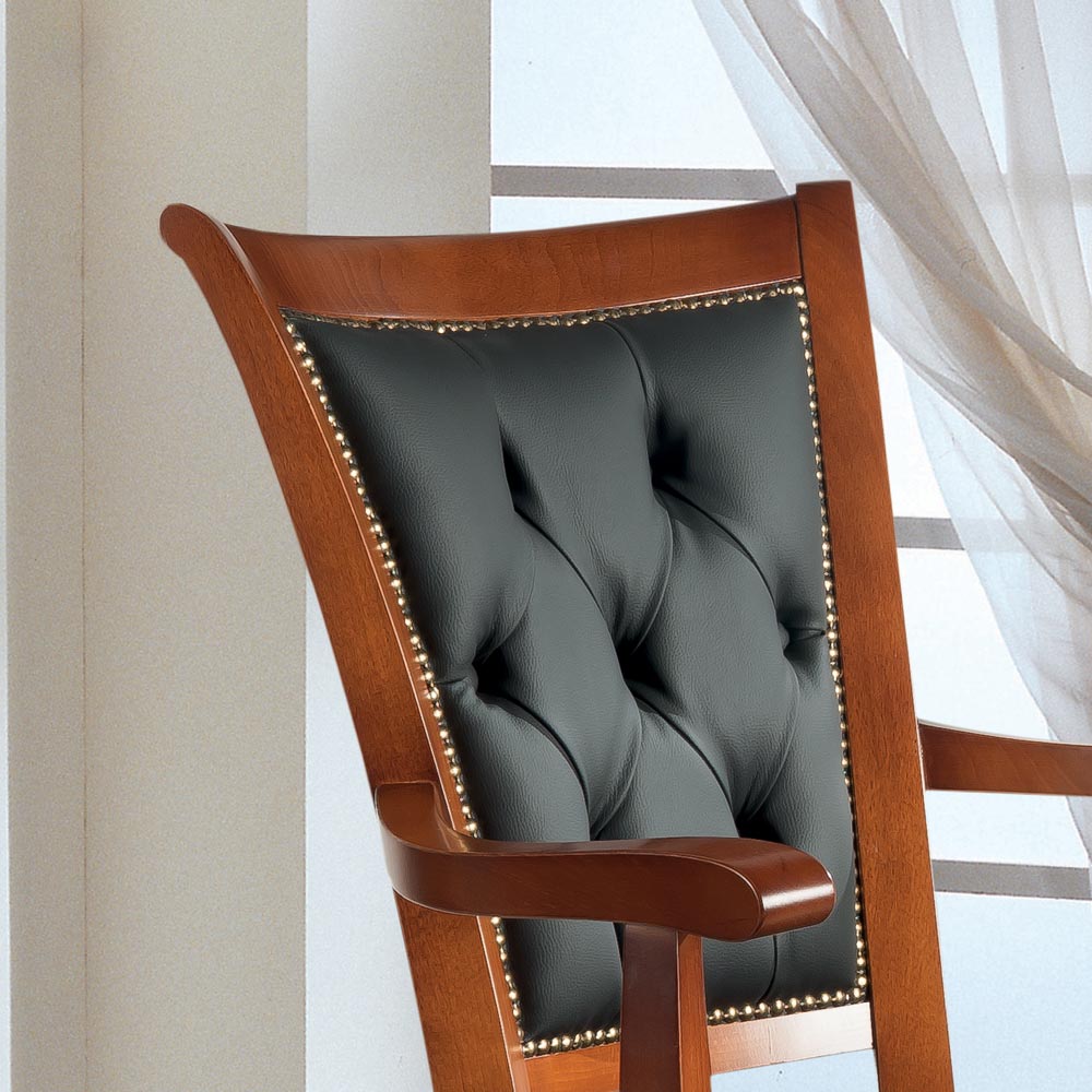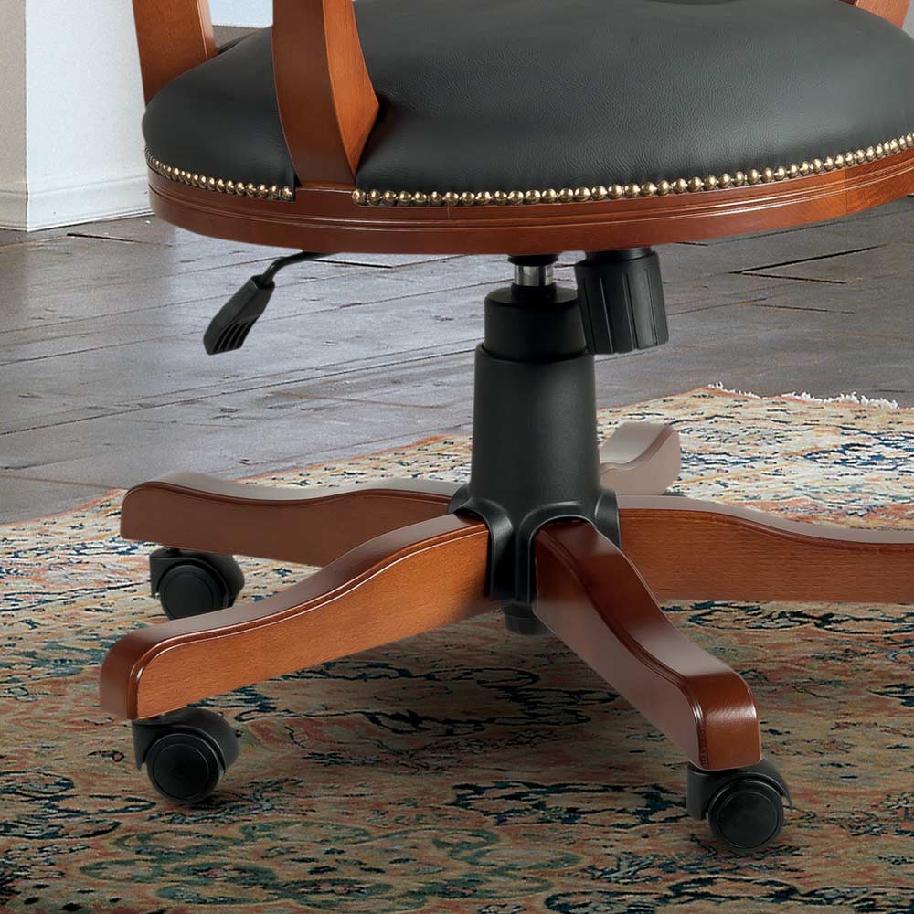 Office armchair with swivel structure characterized by a classic and elegant style made of Bassano walnut wood with padded seat covered in eco-leather . Refined and timeless, this armchair is ideal for giving an exclusive touch to the office or to any environment in which it is placed. Completely made in Italy by skilled master craftsmen , masters of art who finish each piece of furniture with wisdom and taste for elegance. The production is carried out using fine materials , first of all wood, and performing the workbyhand with the utmost care and professionalism that distinguishes Made in Italy products.