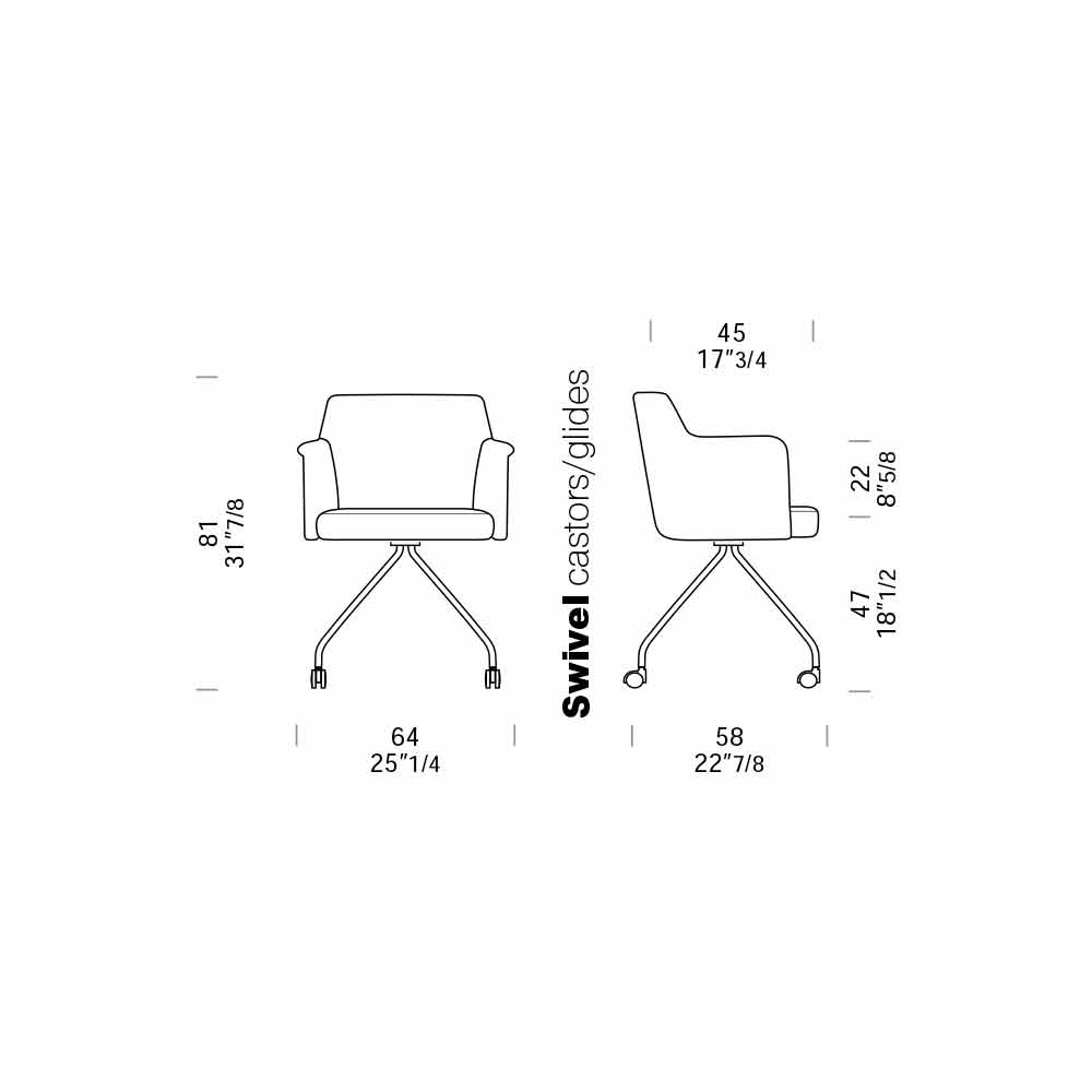 - Base: Swivel, 4 spider legs, steel tube, chrome finish.