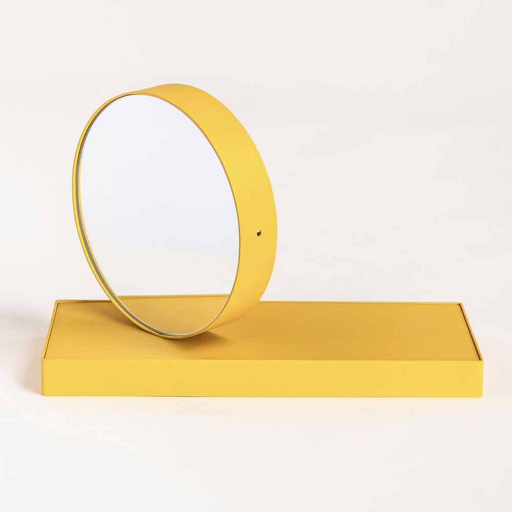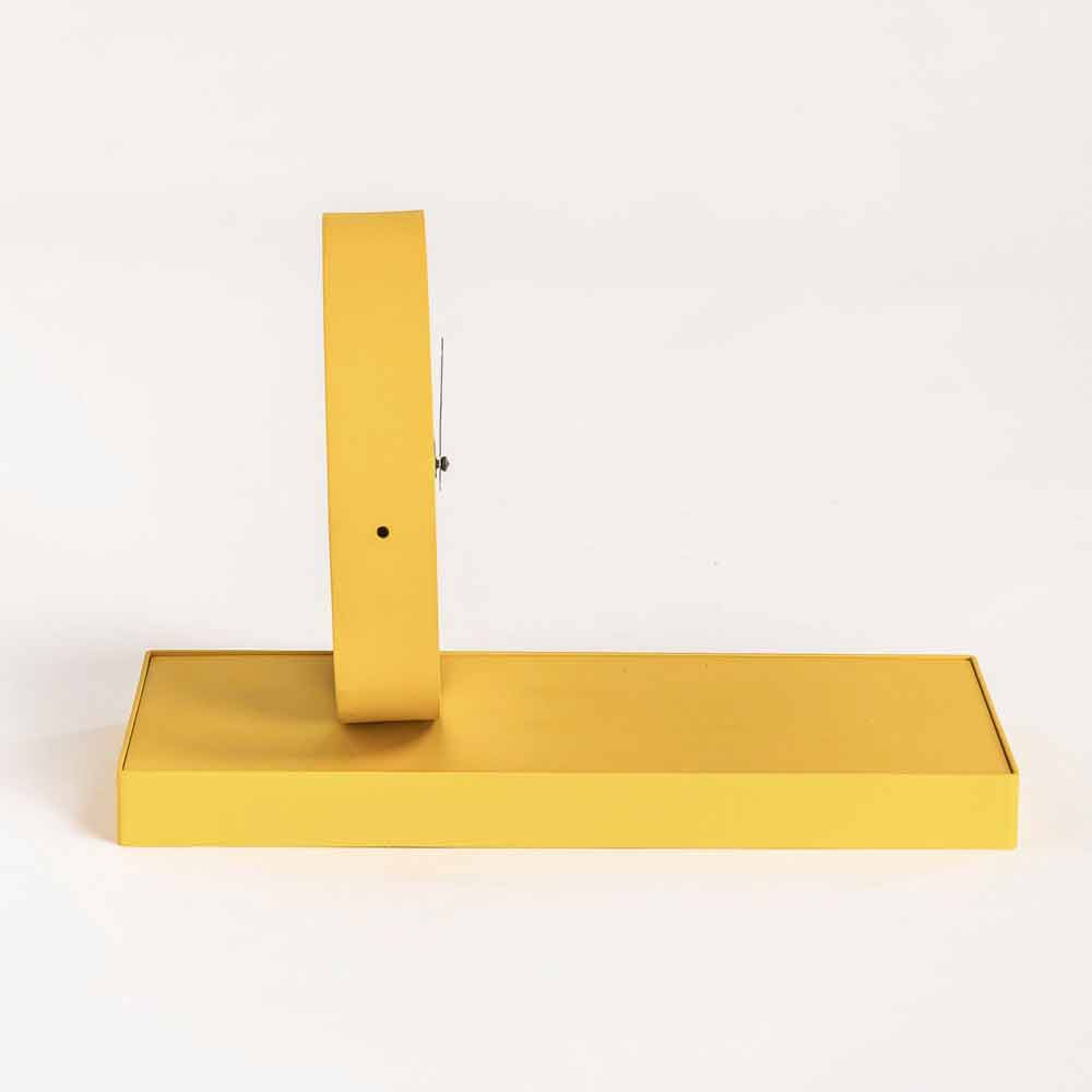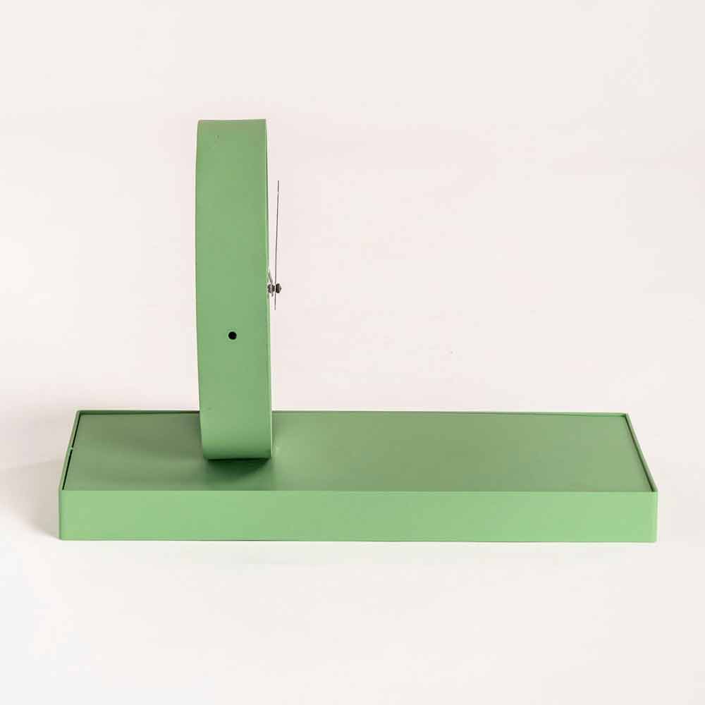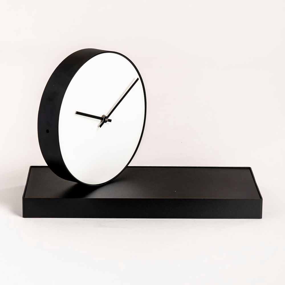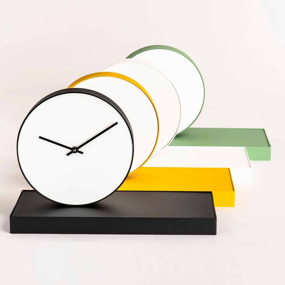 The table clock can be an ideal design object to complete the furnishing of various environments with personality and style. This product is entirely made in Italy and has a rectangular base in RAL painted steel on which the round and rotating structure of the clock is positioned which also has a practical mirror on the back. Thanks to its simple and minimal lines , this watch is perfect in the most varied environments characterized by a modern and refined style.