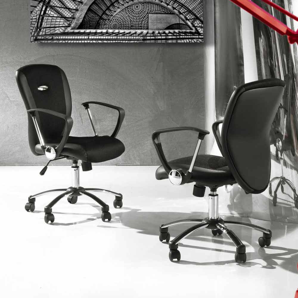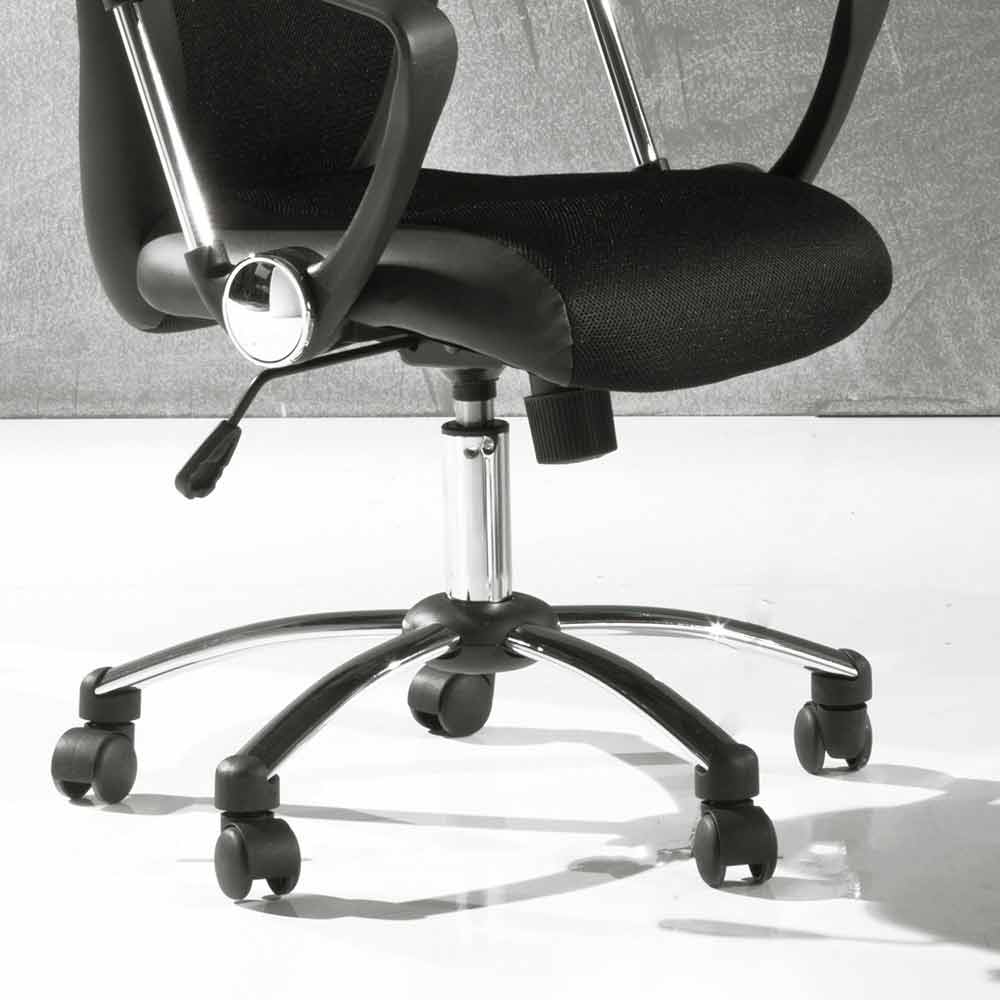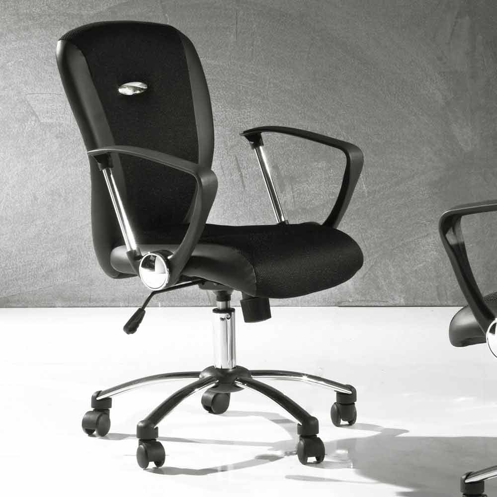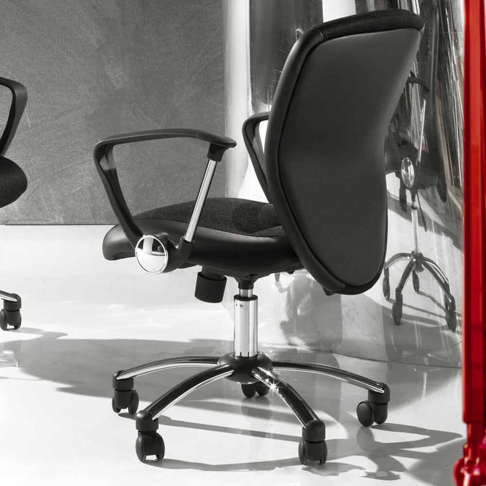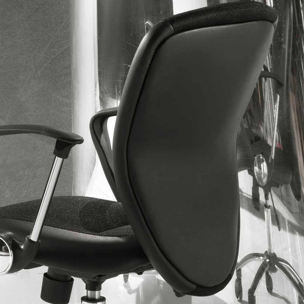 The Giovanna swivel office chair is ideal to give freedom of movement and maximum comfort to the user; it comes with a swivel seat with gas lift, chromed metal structure with polyurethane wheels; seat covered in black puma and back in black micro-perforated technorete.