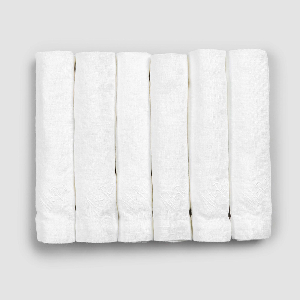6 White heavy linen napkins with fold edge, luxury and elegant design made in Italy.