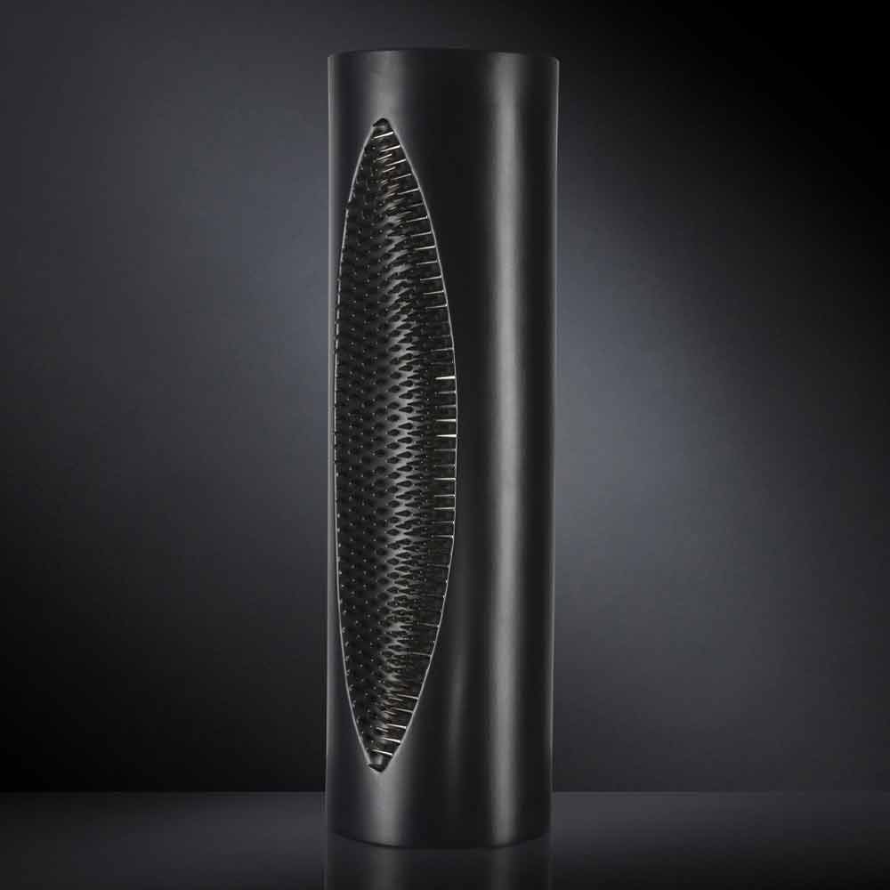 Tall decorative vase in matt black ceramic handmade in Italy.