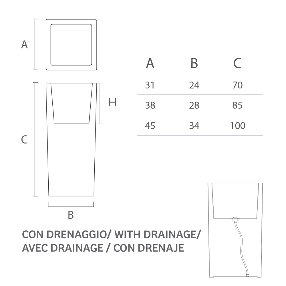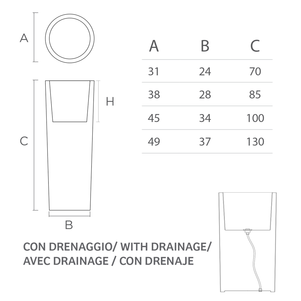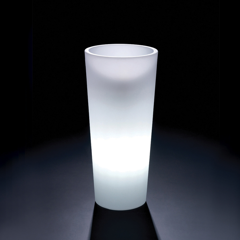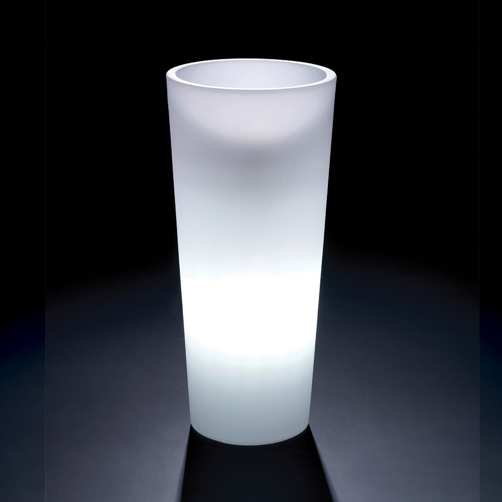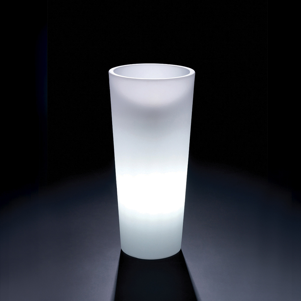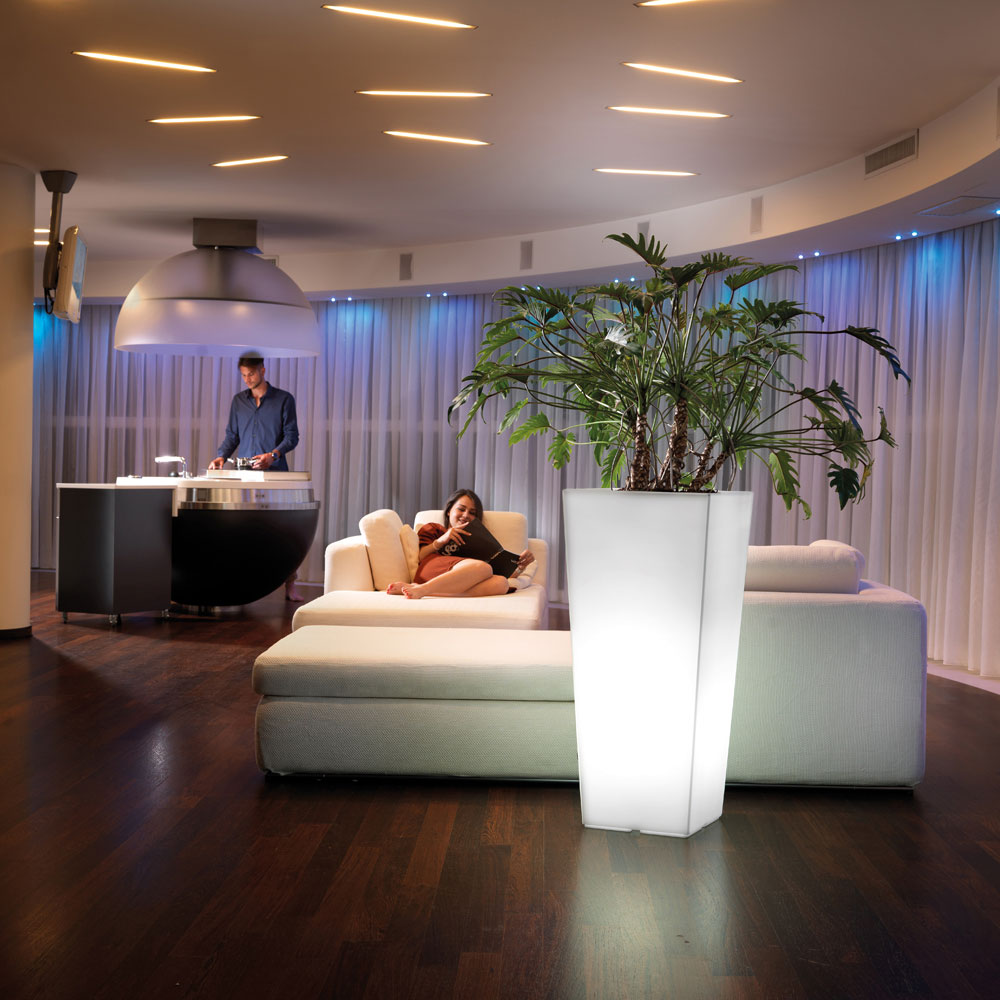 The structure includes a water drainage kit to allow this vase to furnish indoor and outdoor areas without sacrificing the practical and functional aspect. This indoor vase is equipped with an integrated LED light to give an extra touch of style to indoor spaces, but also to outdoor environments for events.