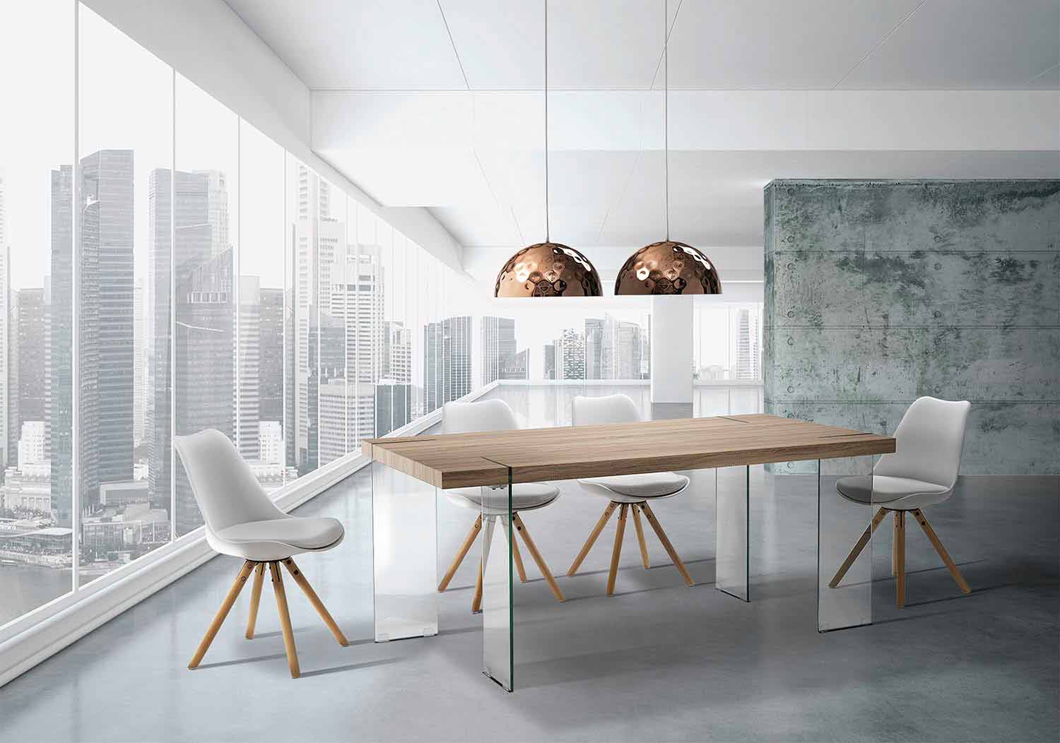 Modern Dining Table Wooden Top and Steel Base Made in Italy - Aronte