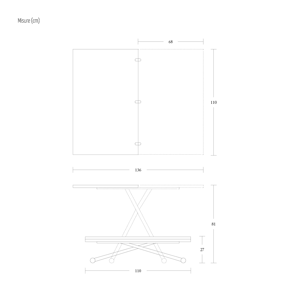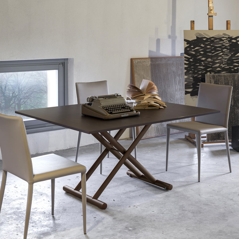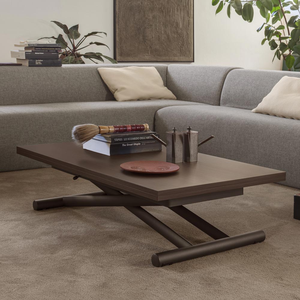 Transformable coffee table in melamine wood and metal Made in Italy.