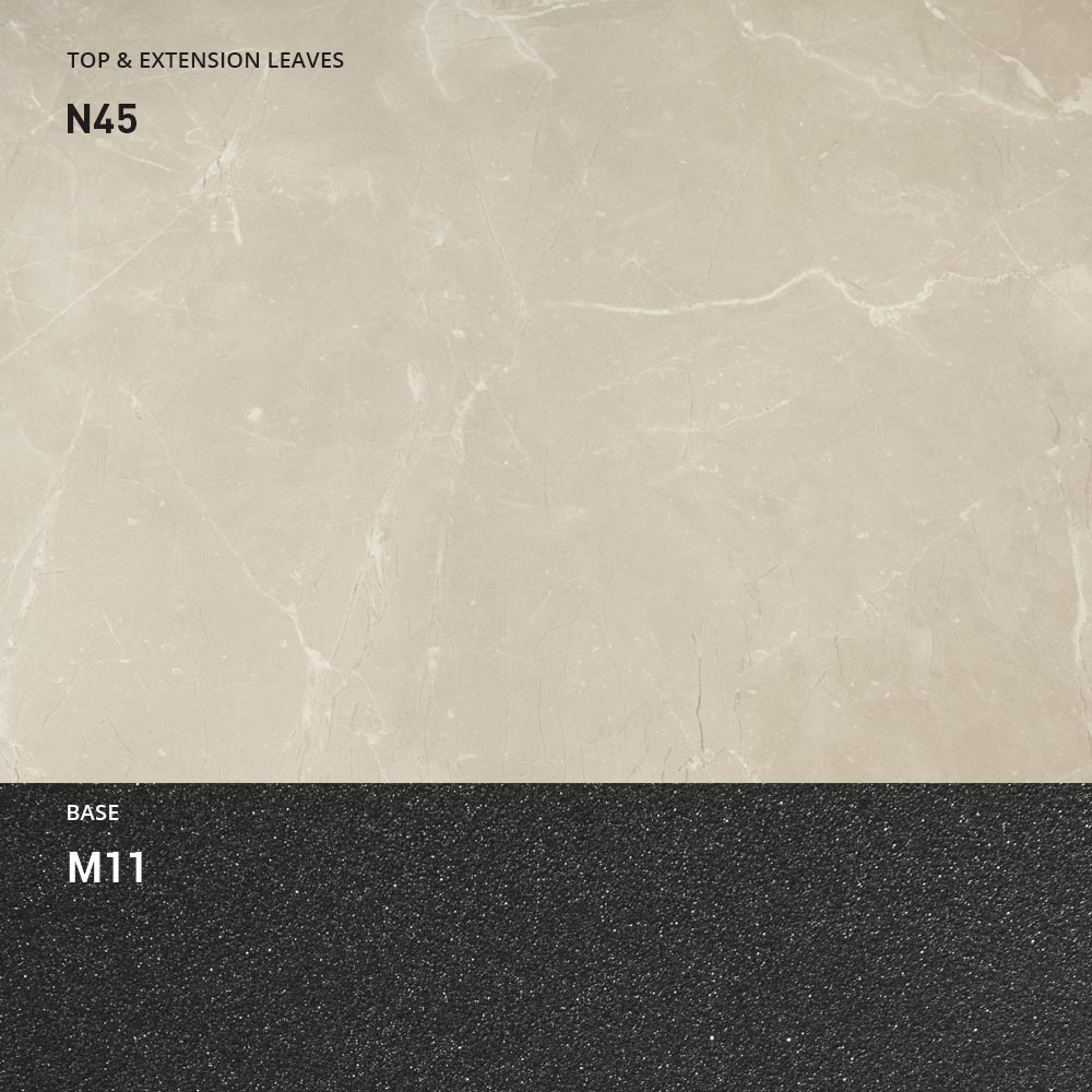 melamine top complete with 2 internal extension leaves of 45 cm each with