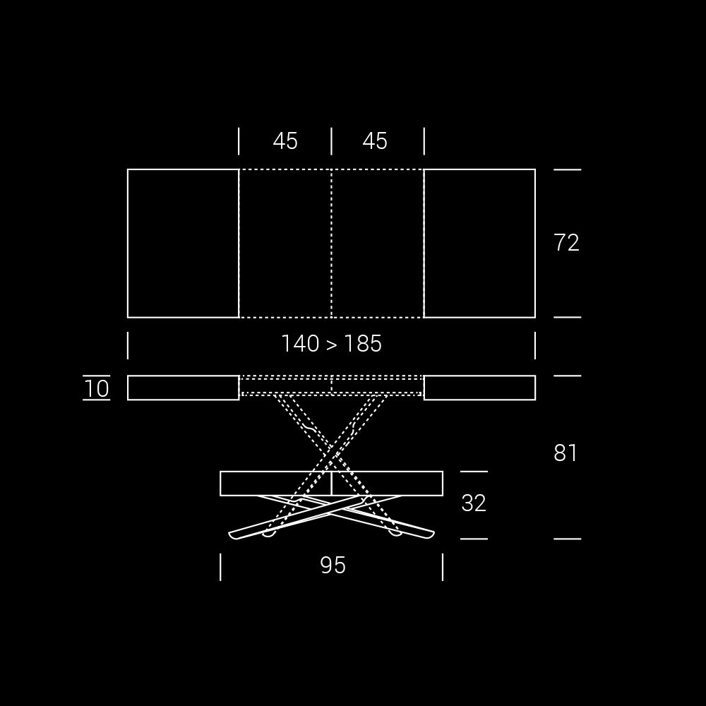 NB : when opening the table it is necessary to lift the extension, position it at the level of the top and, only then, open it.