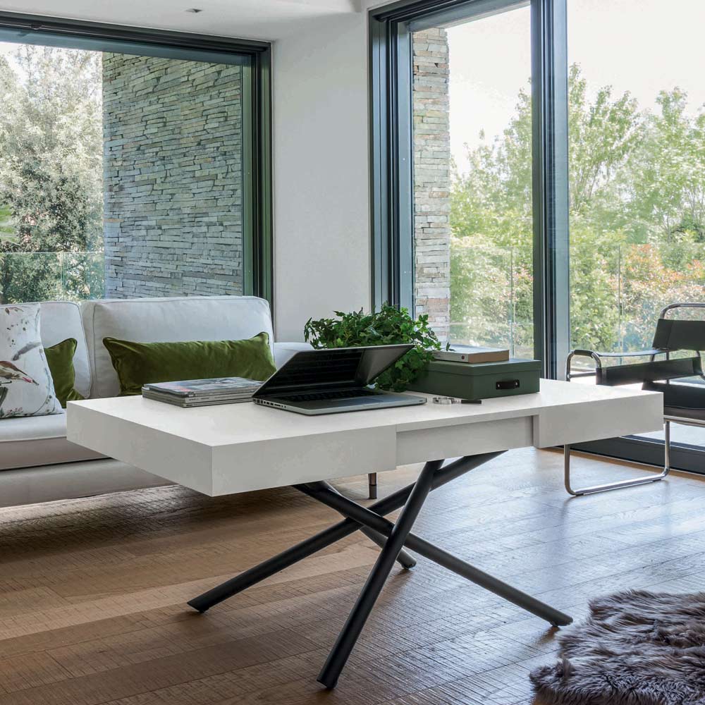 Transformable coffee table in melamine wood and metal Made in Italy.
