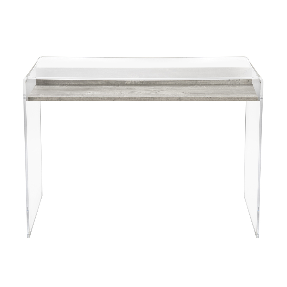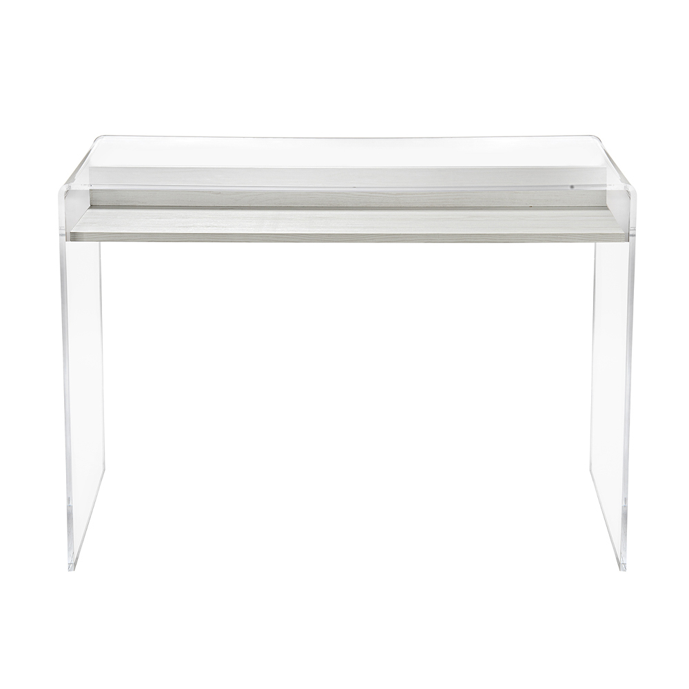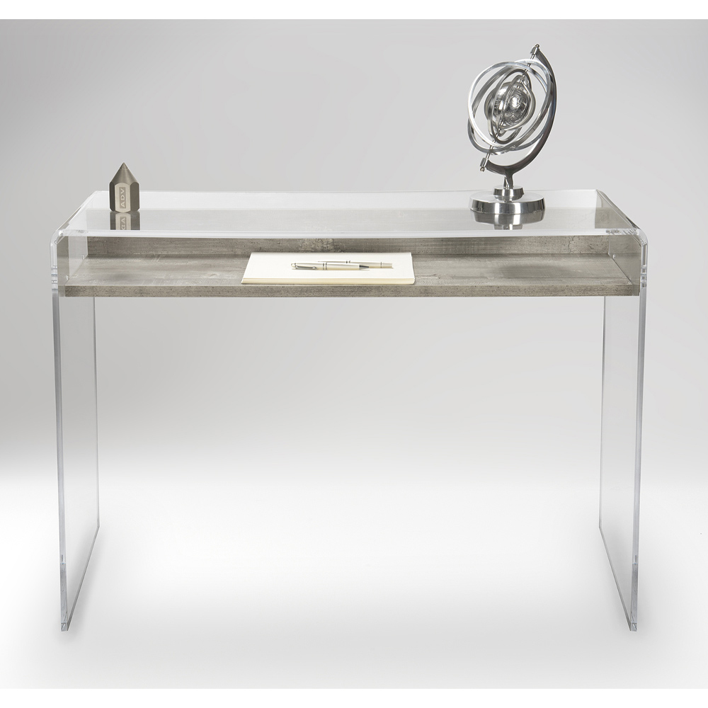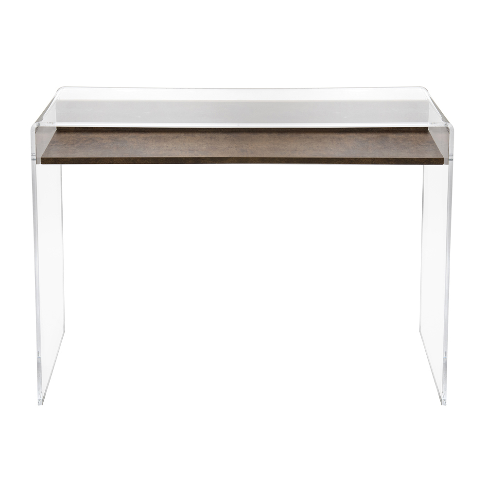 Modern design desk in transparent laser cut plexiglass with wooden shelf, made in Italy design.