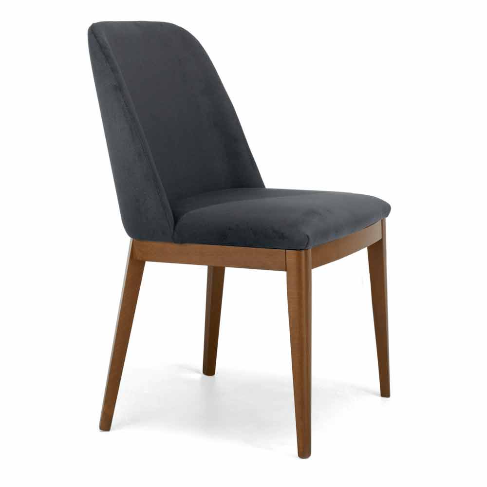 Modern chair for dining room with base in oak wood and upholstered seat in fabric; handcrafted in Italy.