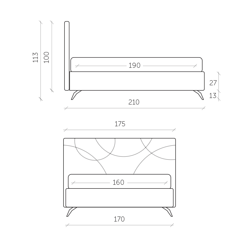 Its linear and versatile structure makes it a bed particularly suitable for furnishing your sleeping area with personality and style without neglecting the fundamental functional aspect of the product which is underlined by the practical container box located under the bed base, ideal for organizing and arranging the most varied items in the bedroom.