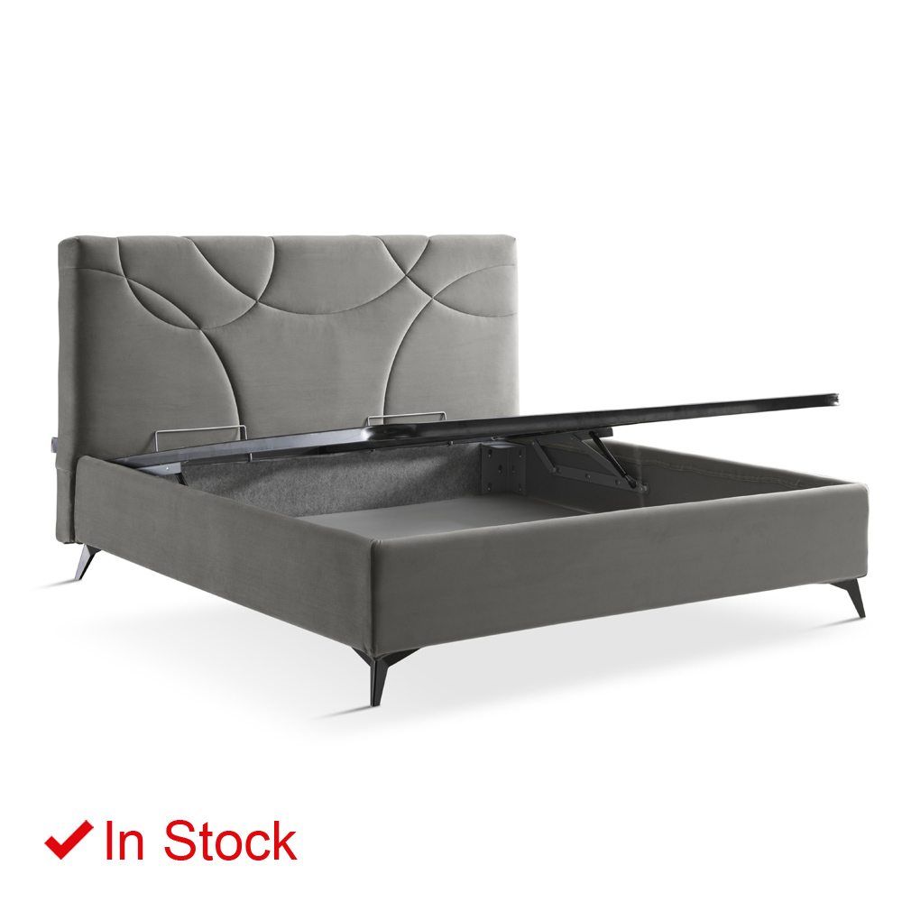 Upholstered double bed with Made in Italy storage box.