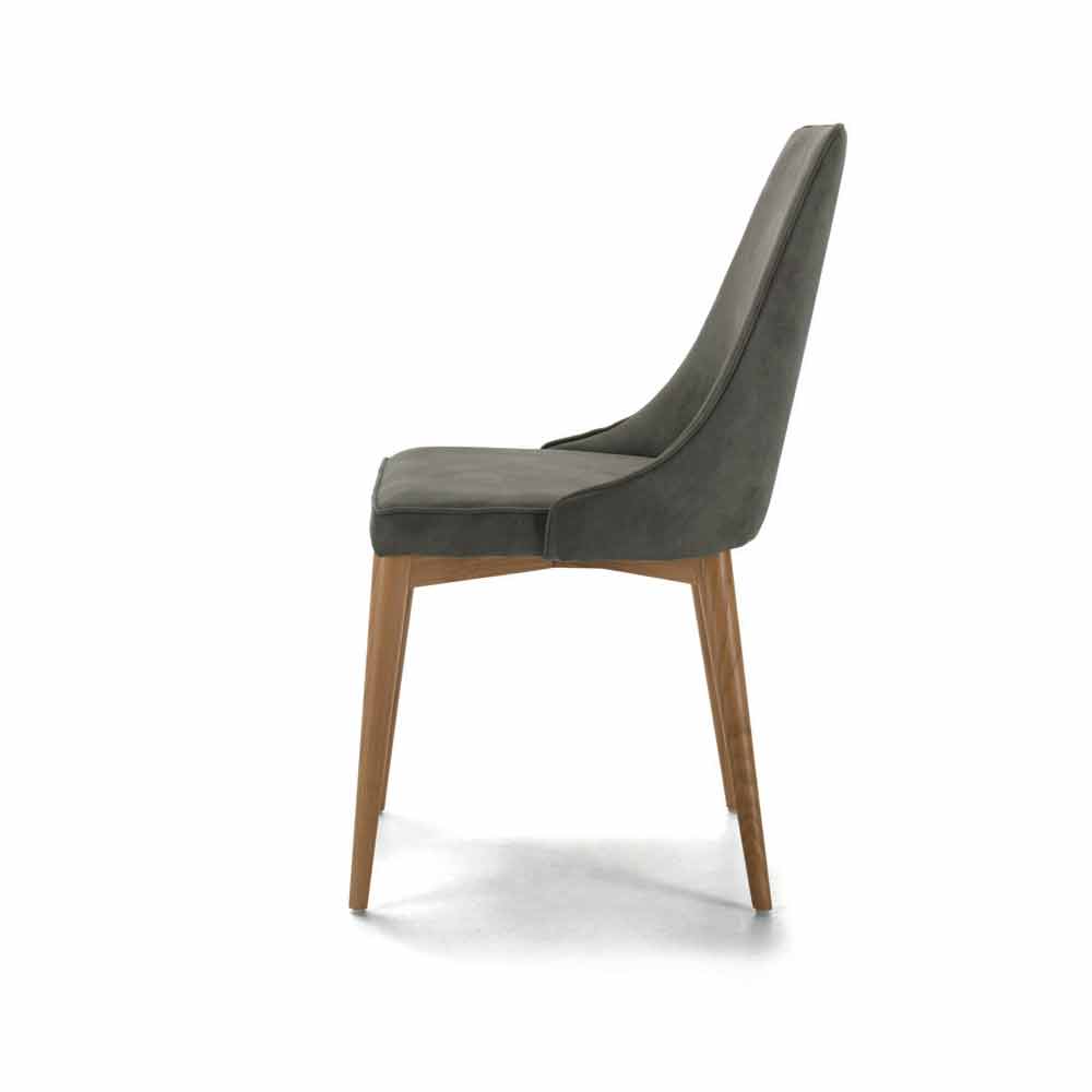 High quality kitchen chair with ash wood base and upholstered seat in eco-leather or velvet; handcrafted in Italy.