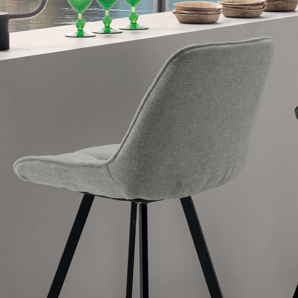 High kitchen stool in upholstered fabric with metal structure equipped with a practical footrest that promotes relaxation and optimal comfort . A product that combines timeless design with the high quality of tailoring to give life to an elegant and welcoming seat capable of representing the perfect synthesis of careful research that revisits the values of tradition in a modern and original key.