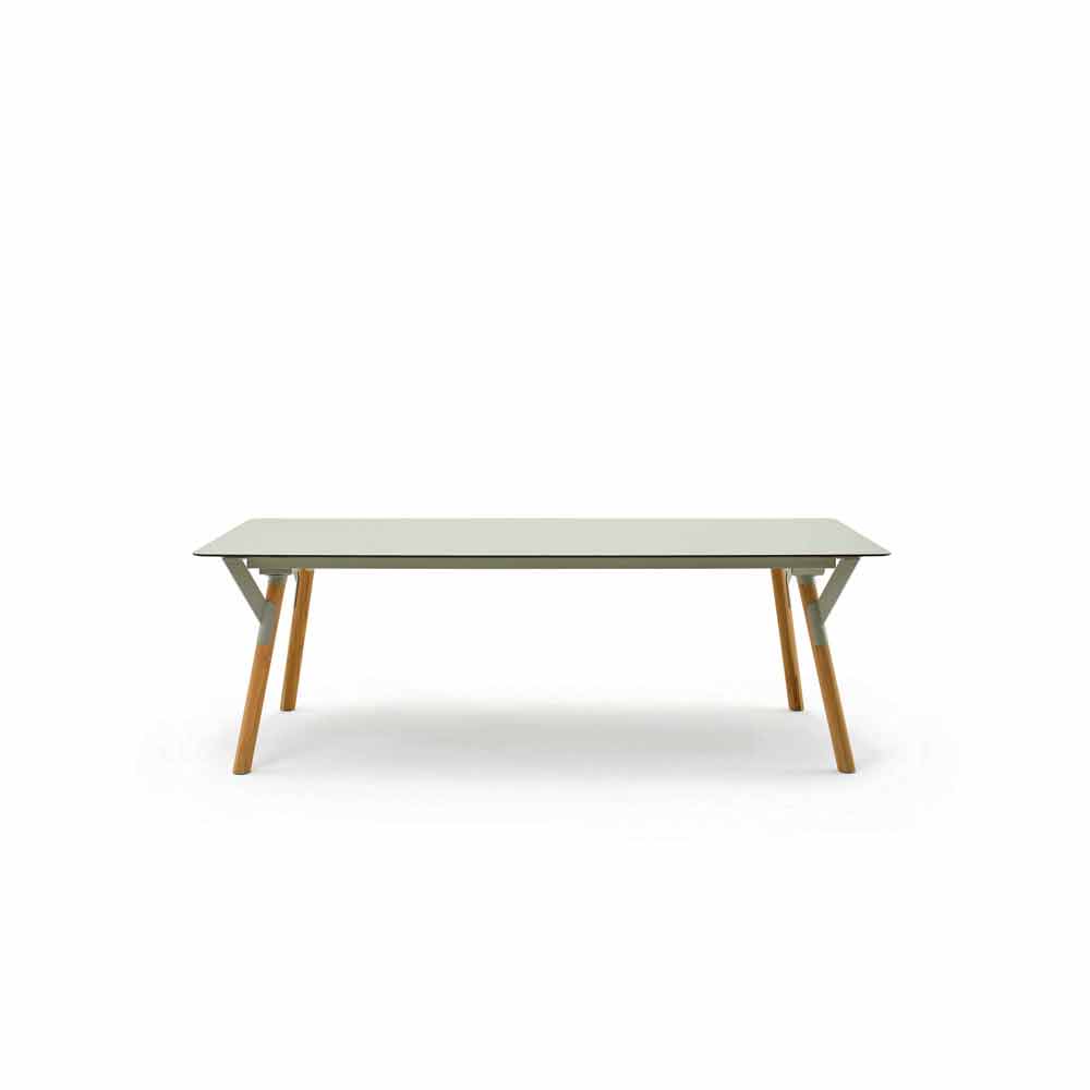 The garden table Link has a painted stainless steel frame and teak wood legs. The top is available in HPL (12 mm thick) or in teak wood ( 30 mm thick ). Thanks to its versatile design, you can use this extensible table both in the garden, in the patio or indoor. Since it is 65 cm high, the table Link can be used with sofas or lounge armchairs You can customize the table Link by choosing between the available dimensions and finishes.