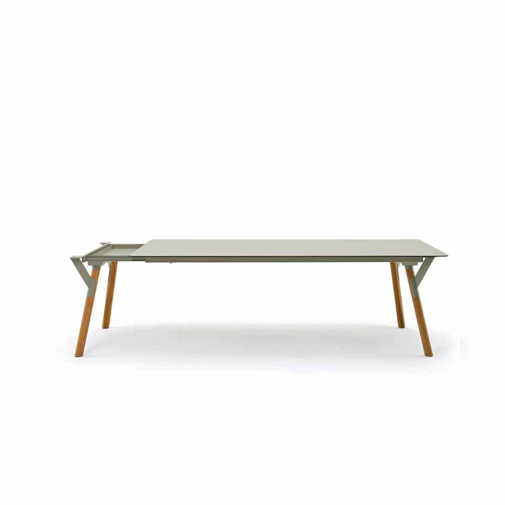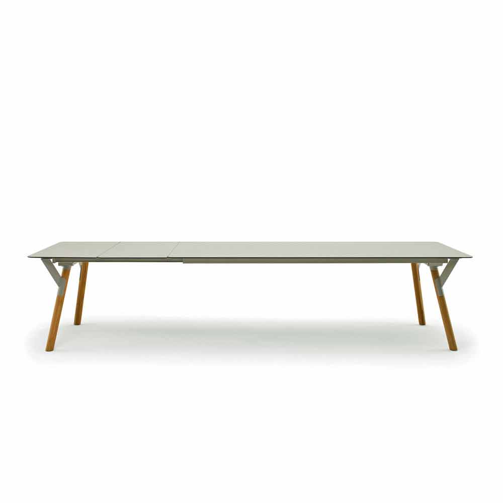 Varaschin Link extensible outdoor table with teak wood legs, H 65 cm