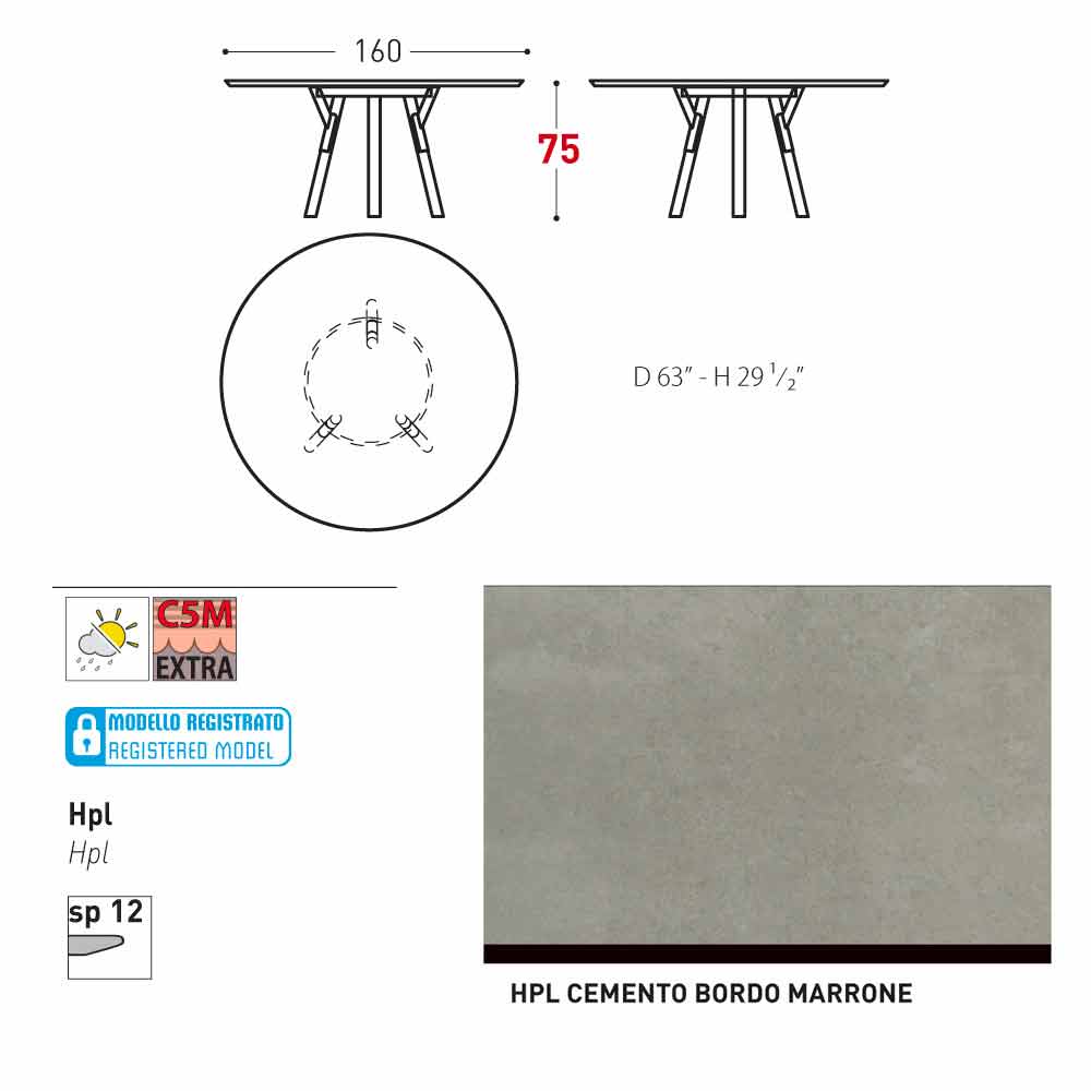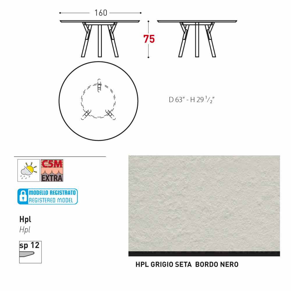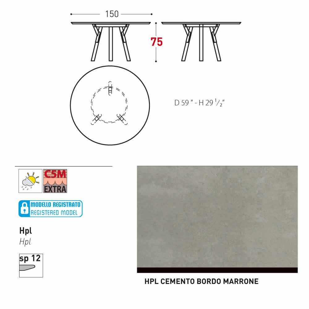 HPL technical features : High-pressure laminates. They are made of several layers of paper (70%) impregnated with thermosetting resins (30%) and compacted for about 45-50 minutes through the combined action of heat ( at about 150 degrees) and high pressure (greater than 7 MPa / Megapascal per square meter.) The result is a stable, nonreactive, non-porous and high-density product. It has physical and chemical features of high mechanical strength (controlled temperature excursion +80/-40 degrees, for less than 30 seconds at extreme temperatures). It resists to light exposure and temperature variations, even in marine environments.